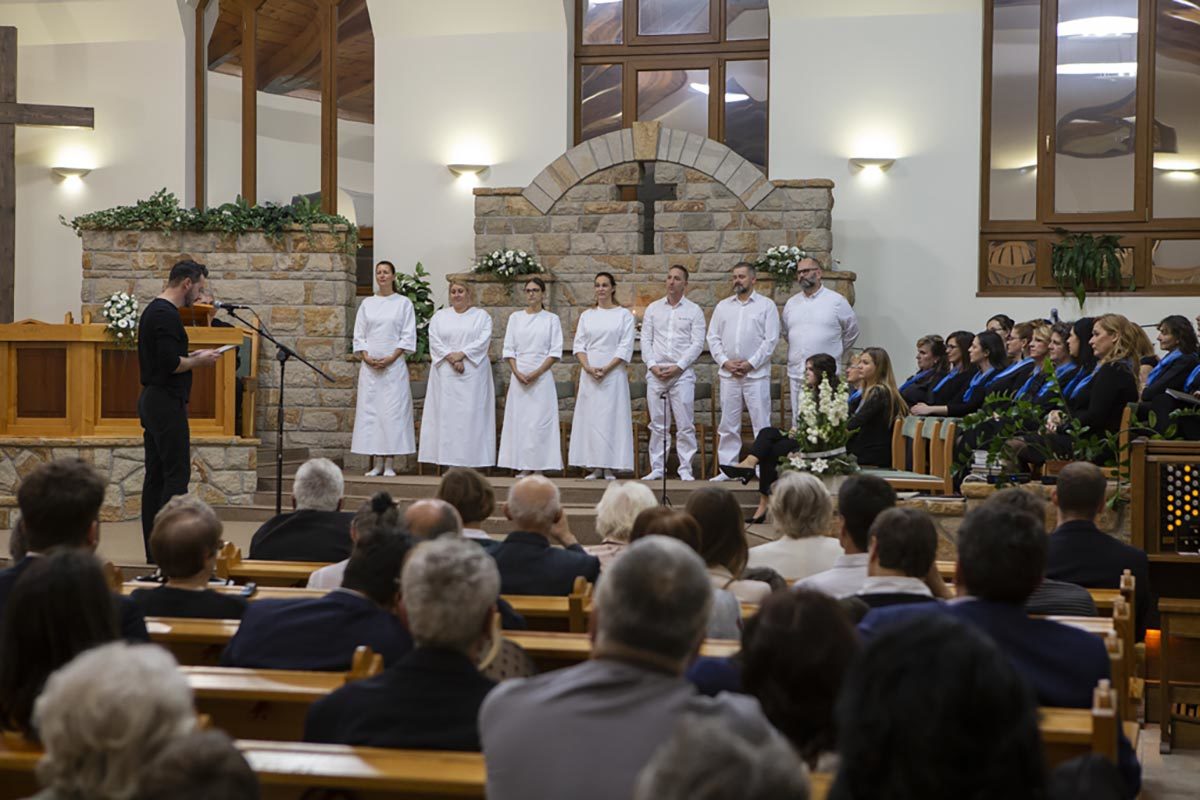 Az alkalom a bizonyságtételükkel kezdődött, majd a bemerítés szolgálatát végző Floch Gábor (korábbi lelkipásztorunk) kérdéseire hangosan, közösen tettek hitvallást. Ezt követően egymás után léptek be a medencébe, hogy megpecsételjék hitüket, új életre támadjanak fel.