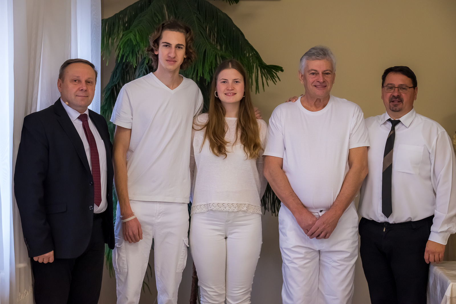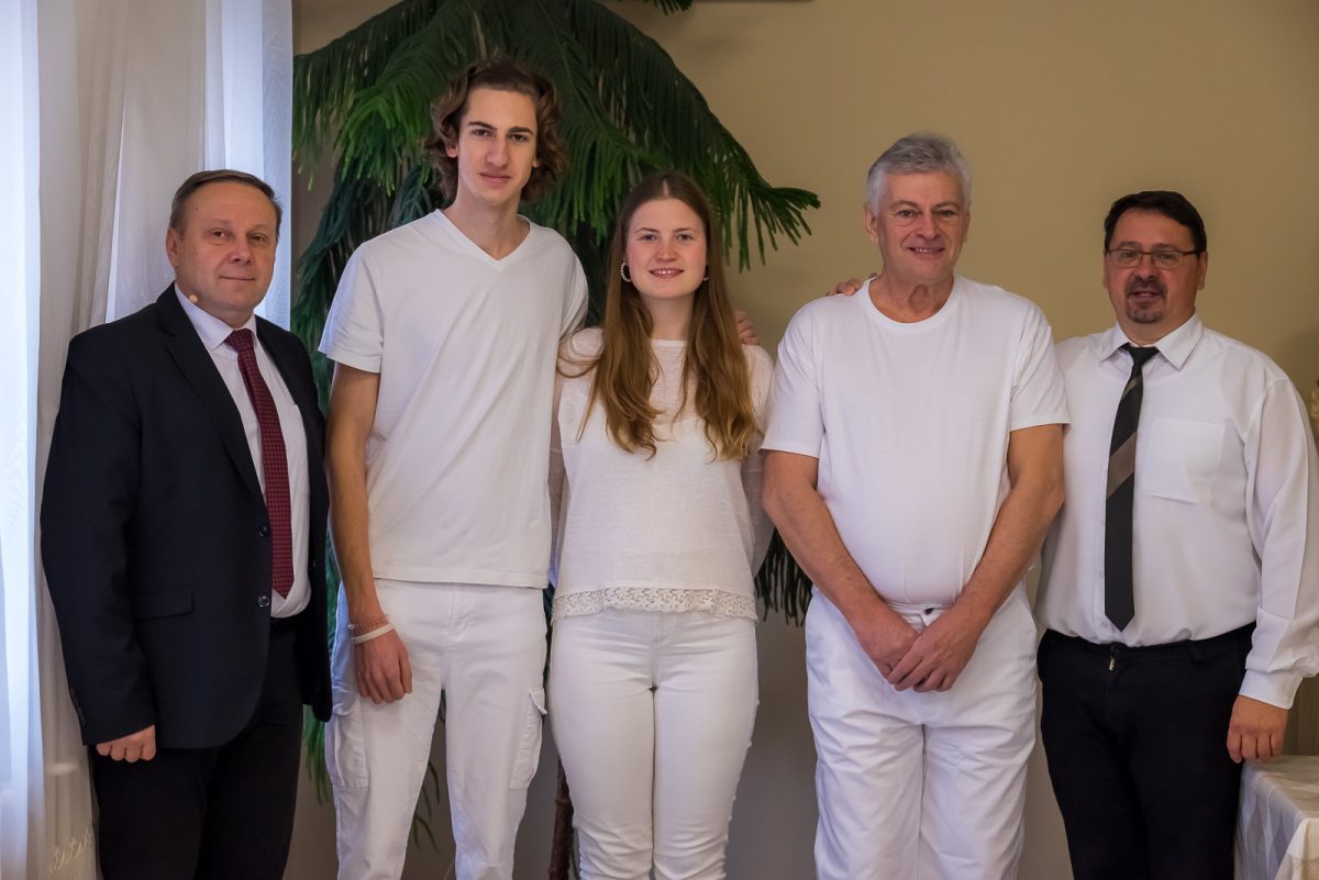 Három fehér ruhás testvér pecsételte meg hitét bemerítéssel.