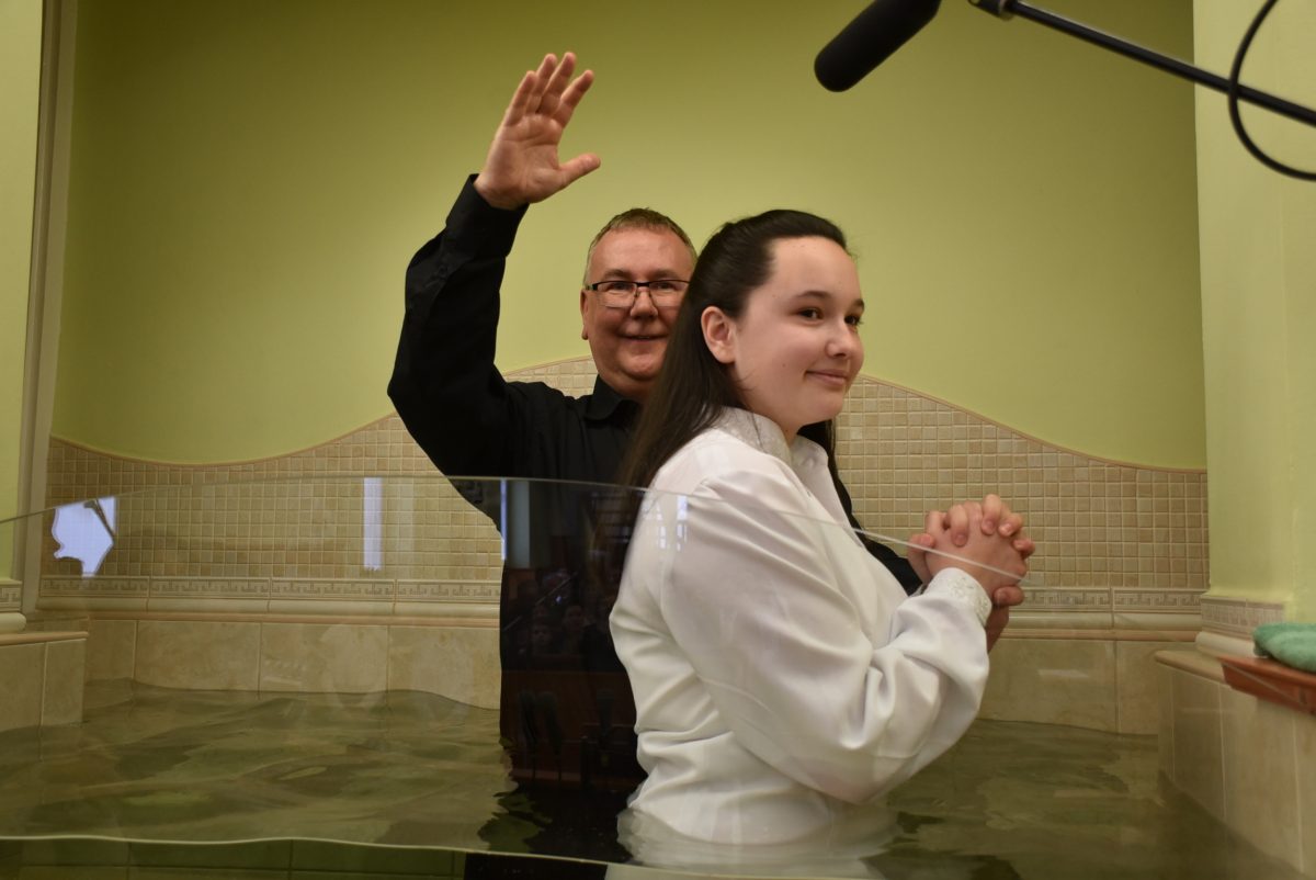 A bemerítést Merényi Zoltán lelkipásztor végezte. A medencéből most is felhívás hangzott a közösség felé, és többen kézfelemeléssel jelezték, hogy szeretnének ők is Krisztus útján járni.
