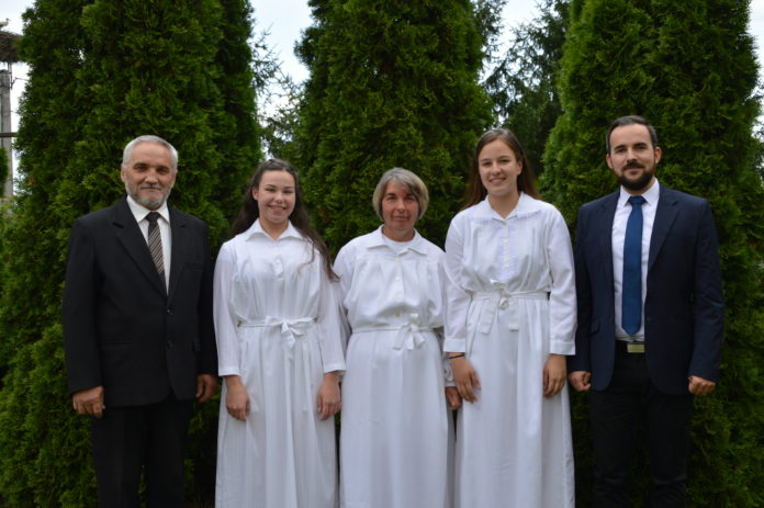 Nagy örömmel számolunk be a három nőtestvér bemerítkezési bizonyságtételéről. Csak Isten tudja megtenni az emberi lélekben, hogy elforduljon a világtól, és egy újat kezdjen Jézus Krisztussal, szembemenve a sátáni kor szellemével. Életük hit által kapcsolódott össze Istennel. „Vele együtt meghaltak és feltámadtak az örök életre”, erről a bemerítkezés által is tanúságot tettek. A bemerítési ünnepre eljöttek barátok, osztálytársak, rokonok, testvérek. Az énekcsoport az átadott élet hálájáról énekelt.