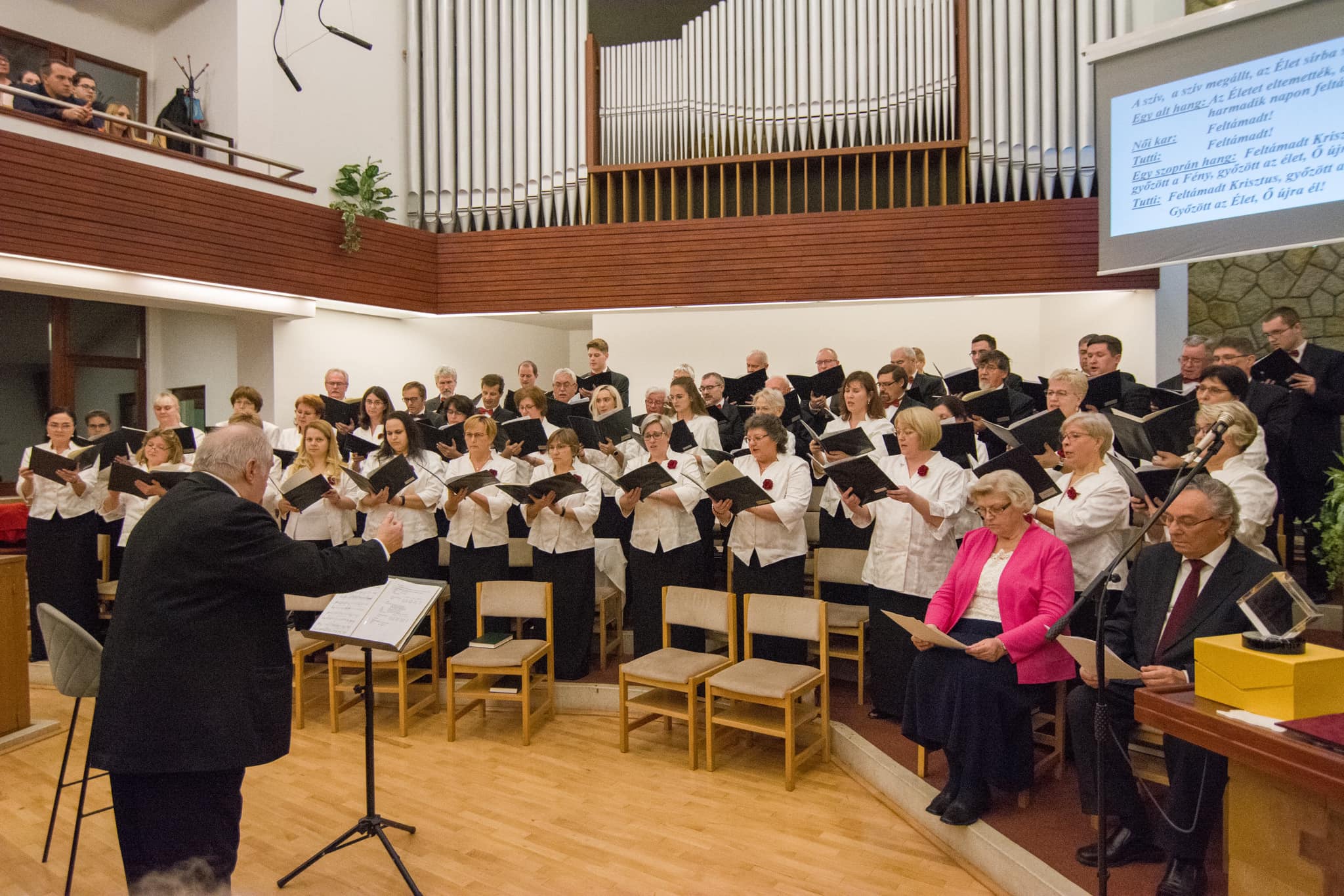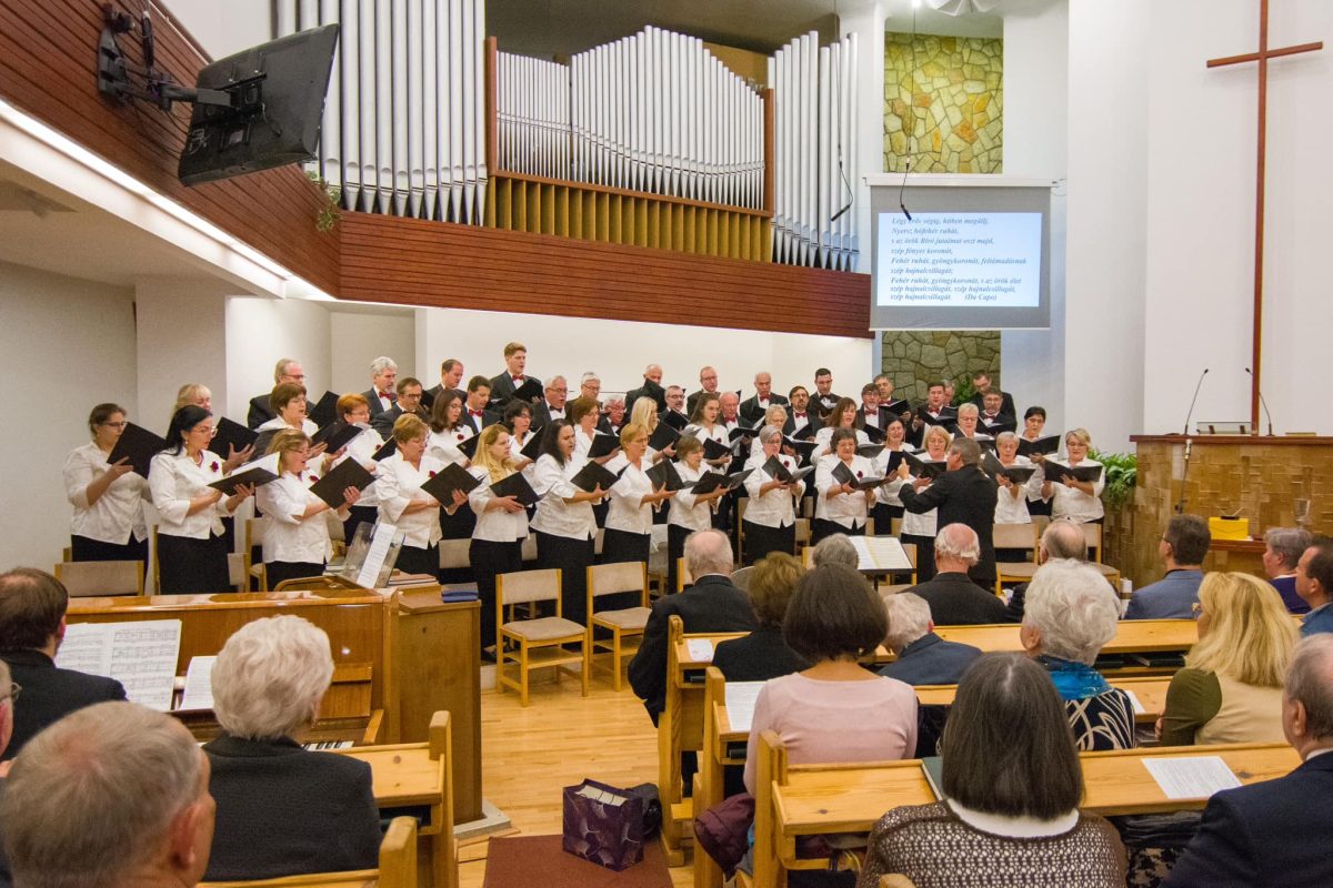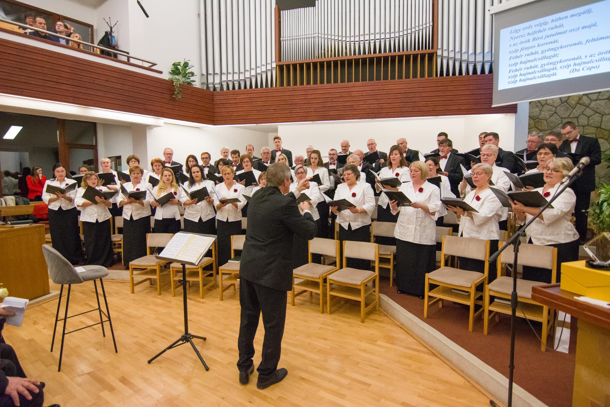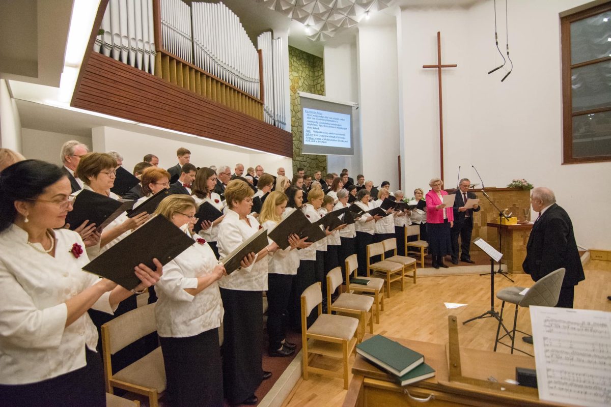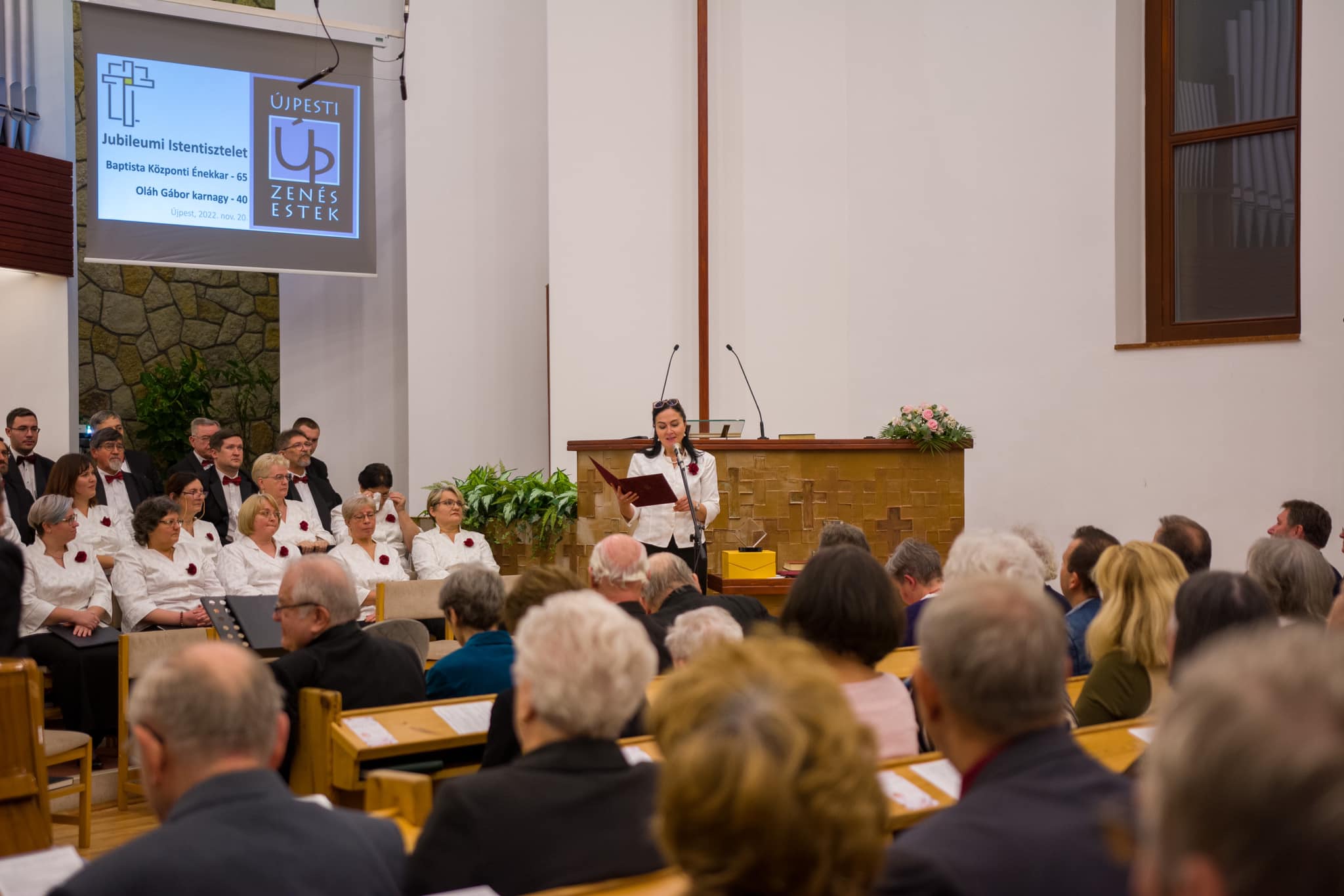 Az Újpesti Baptista Gyülekezet imaházában teljesen megteltek a padsorok november 20-án, vasárnap 17 órára, amikor az istentisztelet kezdetét vette. Mészáros Kornél testvér betegsége miatt Papp Szabolcs lelkipásztorra, a kulturális és sajtóosztály vezetőjére bízta a házigazdai teendőket, aki örömteli jókedvvel és üdítő humorával köszöntötte az egybegyűlteket, majd imádsággal kezdte meg az alkalmat. A kezdőének után Murányi-Kovács Anita kulturális munkatárs vette át a program levezetését. A nyitó hangversenyen díszvendégként részt vett számos neves keresztény zeneművész, név szerint Beharka Pál orgonaművész, zeneszerző, a központi énekkar egyik alapító tagja; Kovács Arthur szintén alapító tag; Berkesi Sándor Kossuth-díjas karnagy; Kamp Salamon Liszt Ferenc- és Kossuth-díjas karmester; Sapszon Ferenc, a Nemzet Művésze, Kossuth- és Liszt Ferenc-díjas karnagy, zeneszerző; és Horváth Gábor karmester, az LFZE docense. Rajtuk kívül jelen voltak még a kórus egykori tagjai, a korábban művészeti díjjal kitüntetett testvérek és Tóth Sámuel Csaba karmester, korrepetitor is, aki az egyik kórusművet zongorán kísérte.