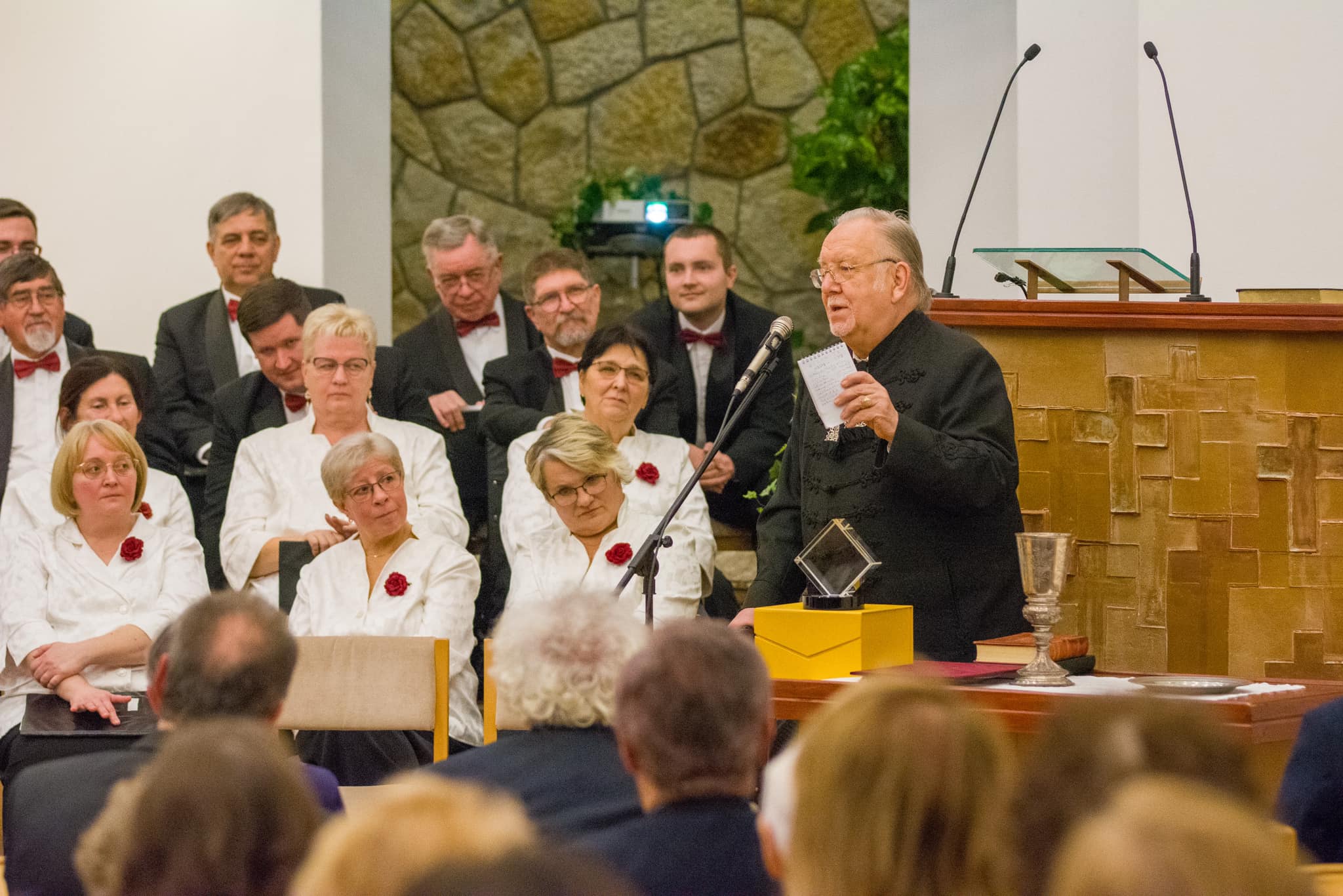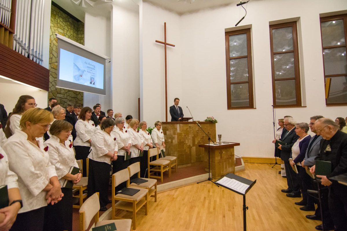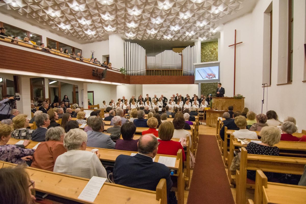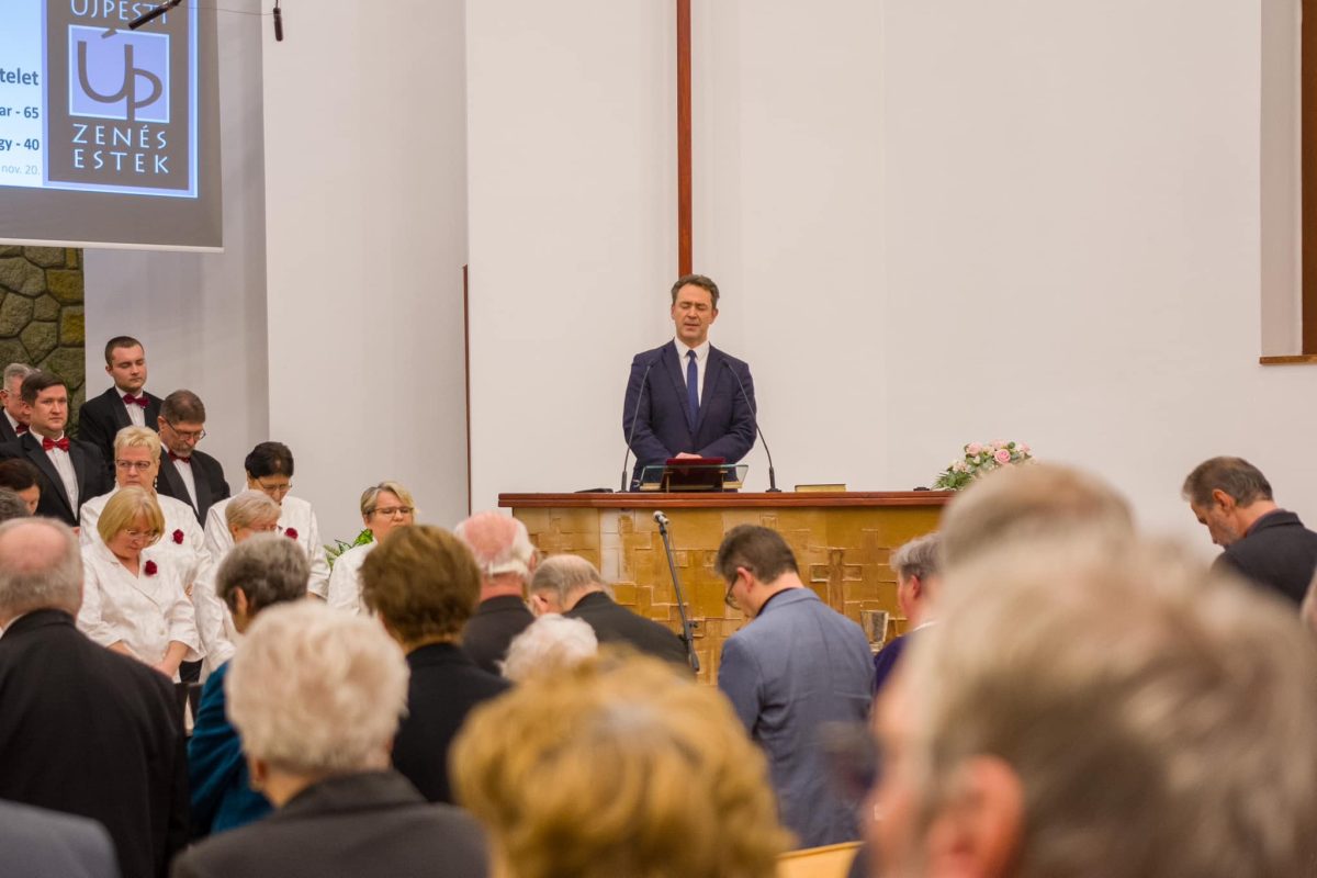Az Újpesti Baptista Gyülekezet imaházában teljesen megteltek a padsorok november 20-án, vasárnap 17 órára, amikor az istentisztelet kezdetét vette. Mészáros Kornél testvér betegsége miatt Papp Szabolcs lelkipásztorra, a kulturális és sajtóosztály vezetőjére bízta a házigazdai teendőket, aki örömteli jókedvvel és üdítő humorával köszöntötte az egybegyűlteket, majd imádsággal kezdte meg az alkalmat. A kezdőének után Murányi-Kovács Anita kulturális munkatárs vette át a program levezetését. A nyitó hangversenyen díszvendégként részt vett számos neves keresztény zeneművész, név szerint Beharka Pál orgonaművész, zeneszerző, a központi énekkar egyik alapító tagja; Kovács Arthur szintén alapító tag; Berkesi Sándor Kossuth-díjas karnagy; Kamp Salamon Liszt Ferenc- és Kossuth-díjas karmester; Sapszon Ferenc, a Nemzet Művésze, Kossuth- és Liszt Ferenc-díjas karnagy, zeneszerző; és Horváth Gábor karmester, az LFZE docense. Rajtuk kívül jelen voltak még a kórus egykori tagjai, a korábban művészeti díjjal kitüntetett testvérek és Tóth Sámuel Csaba karmester, korrepetitor is, aki az egyik kórusművet zongorán kísérte.