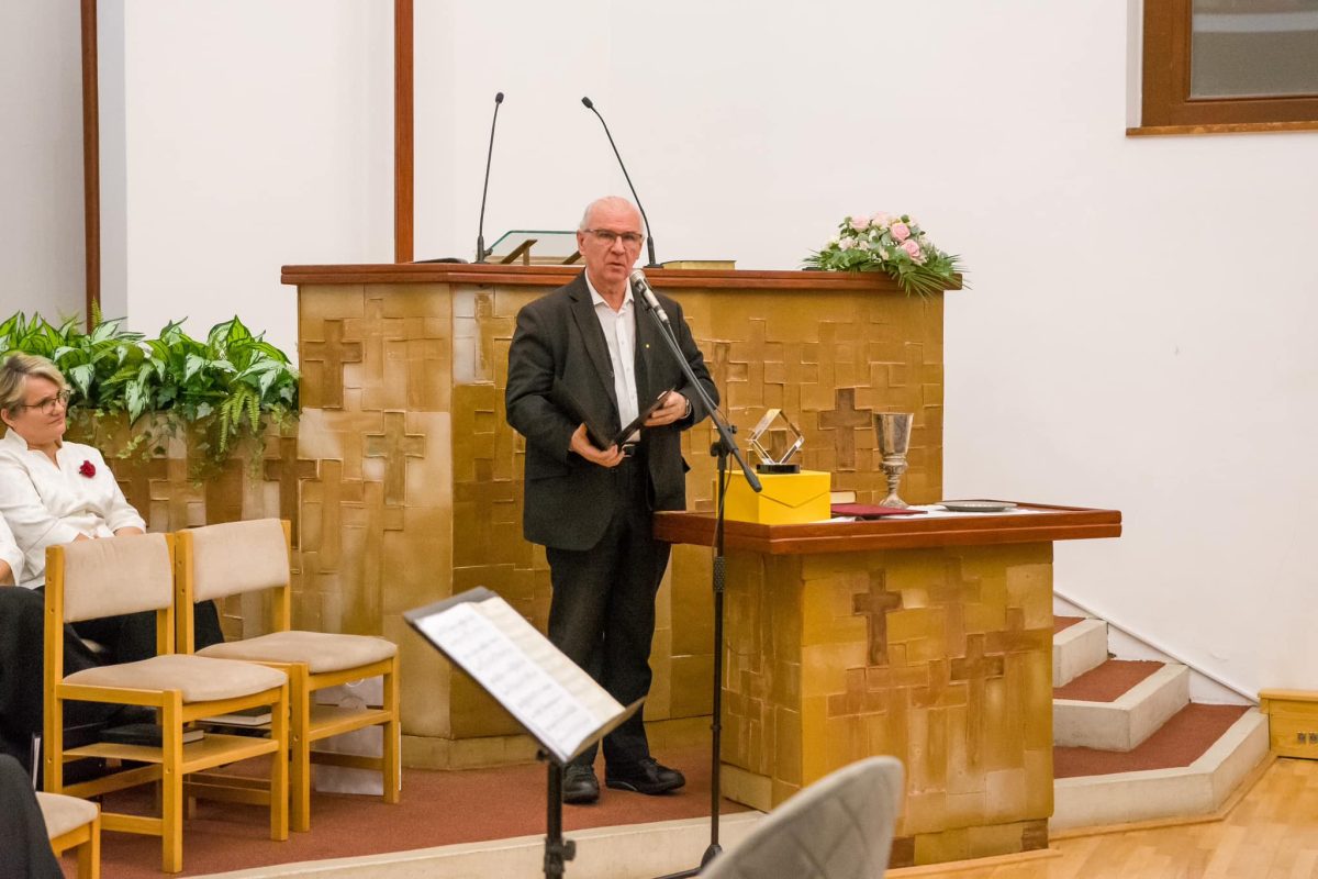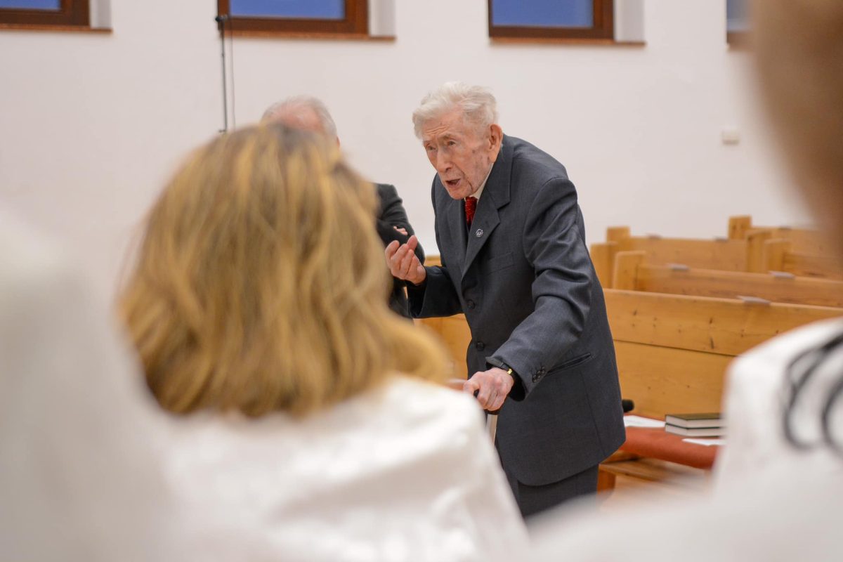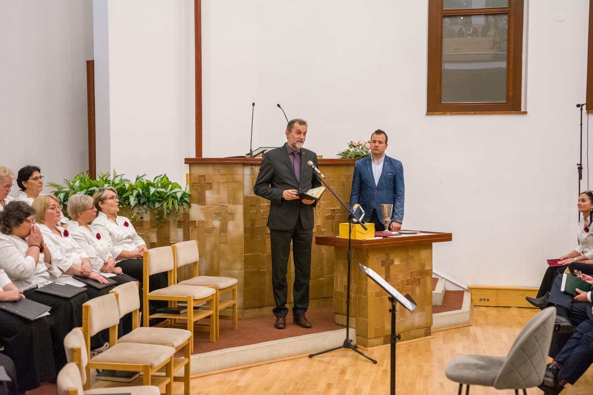 Berkesi Sándor elmesélte, hogy anyai nagymamája bemerítése alkalmával járt először a József Utcai Baptista Imaházban, ahol akkoriban a központi kórus jelenlegi másodkarnagya, Miklós, egy futkározó, aranyos, szőke kisfiú volt. Később az Oláh családdal Debrecenben mélyült a barátsága és a zenei kapcsolata, amely azután Budapesten folytatódott. Megemlítette a Beharka Pállal való barátságát is, akinek a könyveiből tanítanak, és akivel együtt szerkesztették az ökumenikus énekeskönyvet. Pali bácsitól emberséget, alázatot és humort tanult. A Baptista Központi Énekkarral kapcsolatos emlékei között is őriz jó néhányat, többek között egy pünkösdi koncertet az újpesti imaházban, és a közös éneklést a Reformáció500 ünnepén a Művészetek Palotájában. Berkesi Gábor lelkésszel és Berkesi Boglárka orgonistával közös köszöntését igével fejezte ki: „Légy hív, és néked adom az életnek koronáját.” (Jel 2,10) Végezetül kívánságuk pedig, hogy szeresse az Úristen az énekkar további szolgálatait, és tartsa meg.