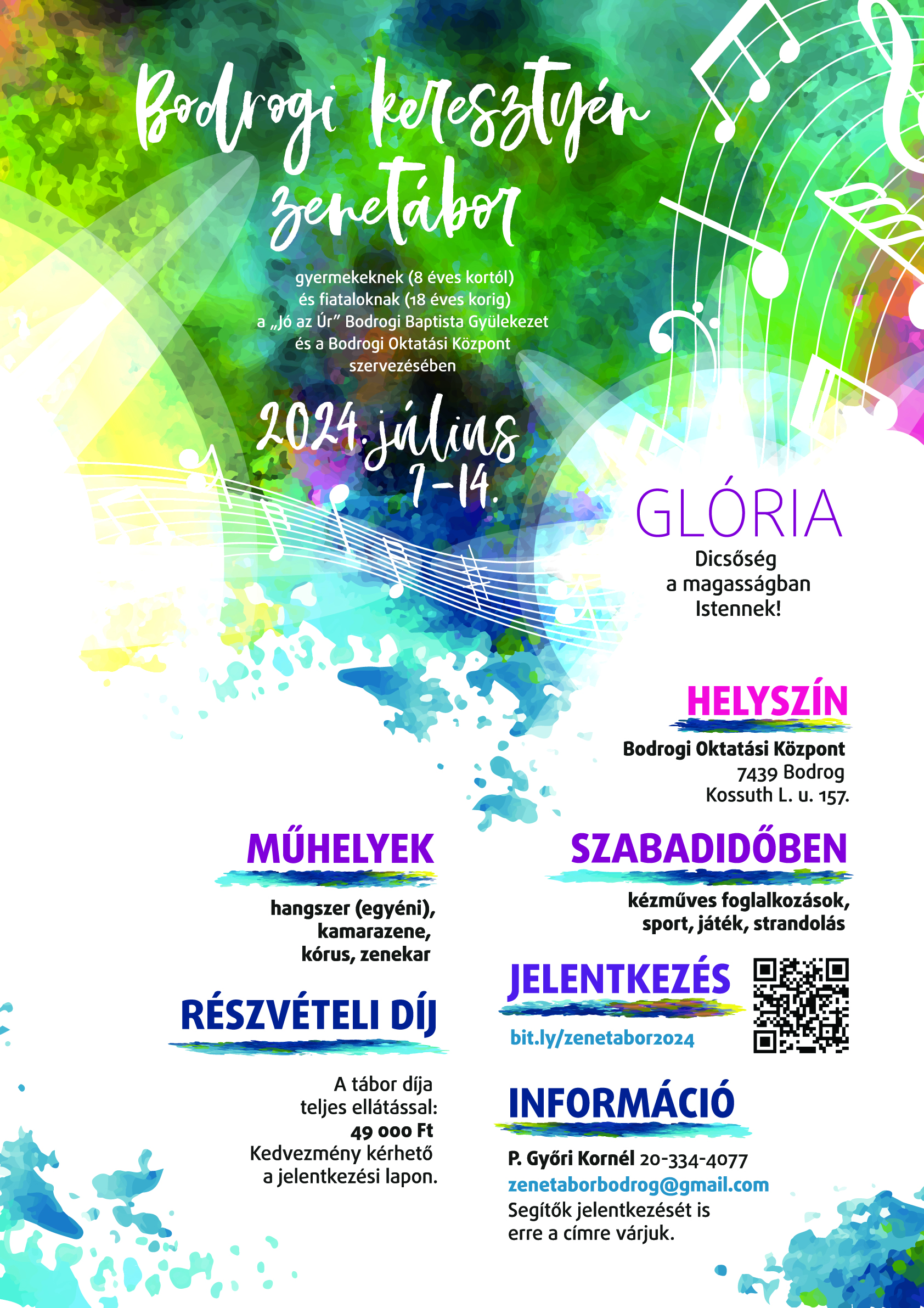 Idén is szeretettel várja az érdeklődőket 8–18 éves korig a bodrogi keresztény zenetábor! A jelentkezés elindult! Részletek a plakáton.