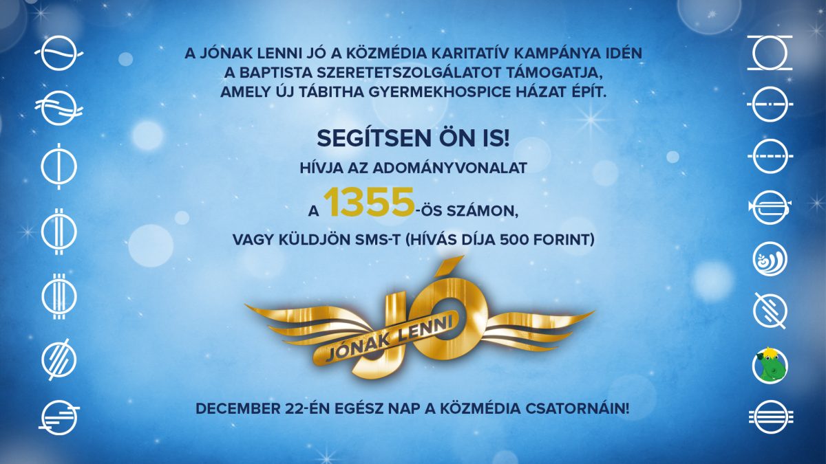 December 22-ig tart a közmédia által meghirdetett „Jónak lenni jó!” adománygyűjtő kampány, melynek idei kedvezményezettje a Baptista Szeretetszolgálat s az általa fenntartott Tábitha-ház.