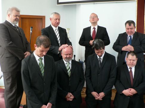 A kézrátételes imádságot sorrendben: Ádány Mihály presbiter, Fábián Sándor lelkipásztor, dr. Szűcs Zoltán PT-elnök és Balla András PT-jegyző mondták el, kérve a Szentlélek erejét és bölcsességét az Úr előtt térdelők életére és szolgálatára. „Áldjon meg az Úr most téged!” – szólt az énekkar éneke.