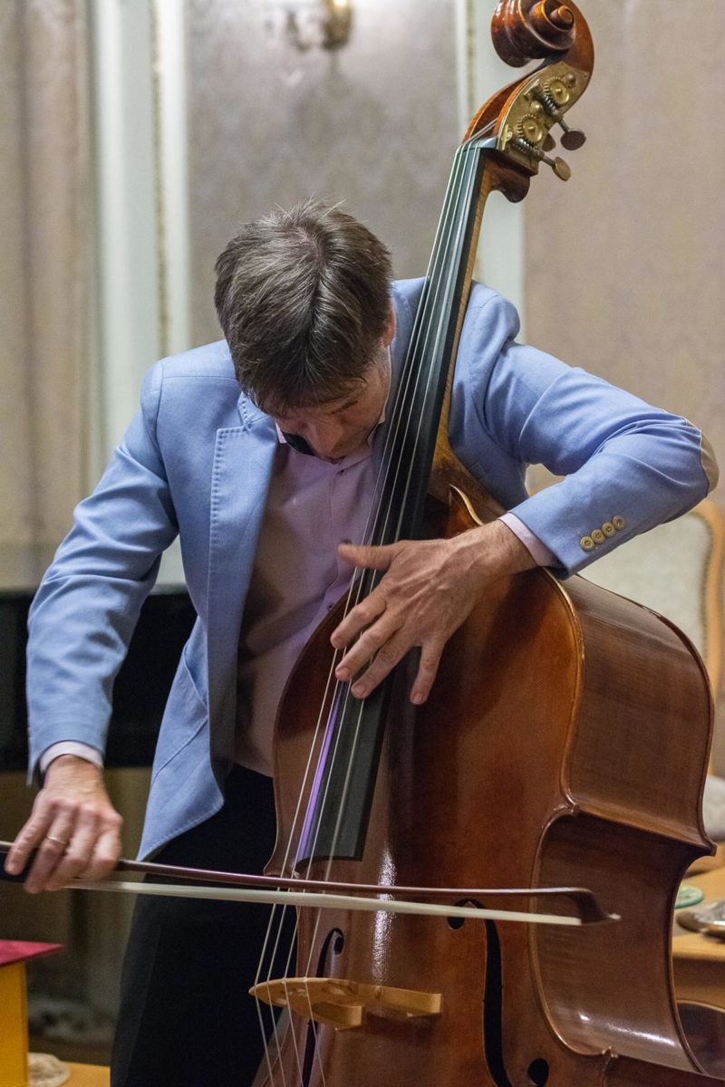 Fejérvári Zsolt nagybőgőművész csodás a cappella játékában Bach zenéjét ajándékozta, majd Mikes Balázs grafikus, teológus művészettörténeti munkásságáról beszélt.