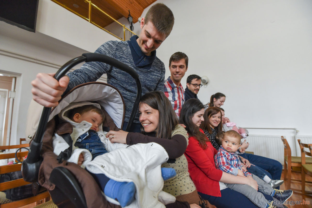 A 10 hónapos Áron szülei – Takács Gábor és Takácsné Kovács Eszter – nagyon jól érezték magukat a rendezvényen. Szüleik a baptista közösség tagjai, tudatosan élik meg házasságukat. Bár azt mondják, eddig ösztönösen ment minden, tudják, jöhetnek még nehézségek. Ezért van szükségük az ilyen programokra.