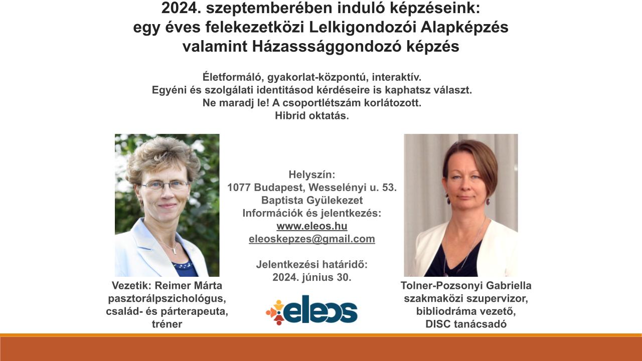 Elindult a jelentkezés: www.eleos.hu Képzések menüpont.
