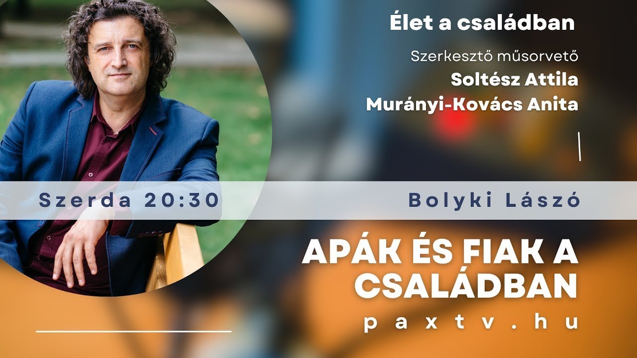 Apák és fiak a családban – Bolyki László zenész, publicista, igehirdető most megjelent új könyve kapcsán beszélgetett Soltész Attilával és Murányi-Kovács Anitával a PAX Televízióban a férfivá válás útjáról.