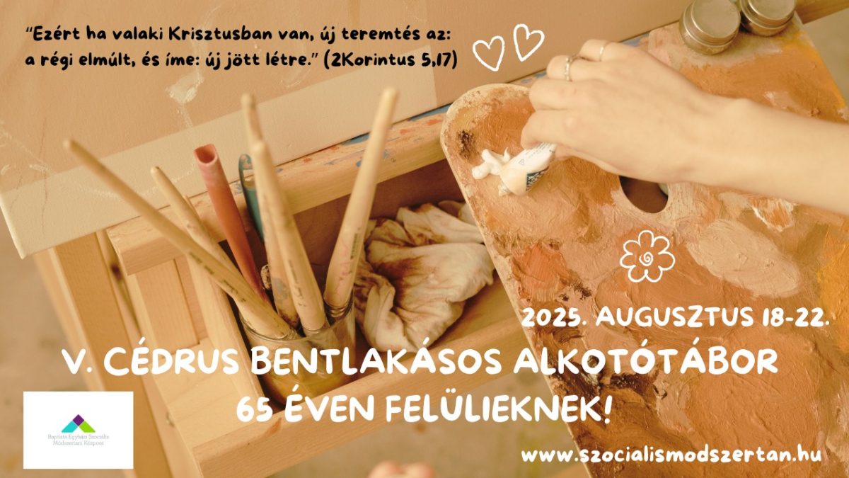 A Baptista Egyházi Szociális Módszertani Központ örömmel hirdeti meg az V. Cédrus Alkotótábort, amelyre várjuk mindazokat a 65 év feletti érdeklődőket, akik: