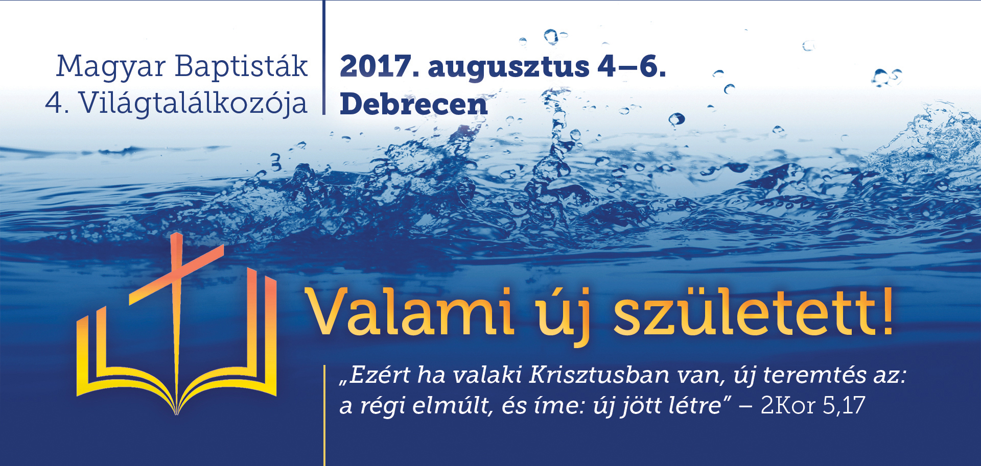 2017. augusztus 4–6. között tartjuk a Magyar Baptisták 4. Világtalálkozóját a debreceni Főnix Csarnokban. Fő előadó Paul Msiza dél-afrikai lelkipásztor, a Baptista Világszövetség elnöke lesz. A találkozó jelmondata: Valami új született! Az esemény témaválasztásával hangsúlyozni szeretnénk az 500 éve történtek fontosságát, benne az anabaptisták és baptista közösségünk egyik fő alapértékét, az újjászületés alapvető igazságát. Tudjuk, hogy valami új azért kezdődhetett el 500 éve, mert 2000 éve eljött Valaki, aki teljesen újat kezdett velünk, emberekkel.