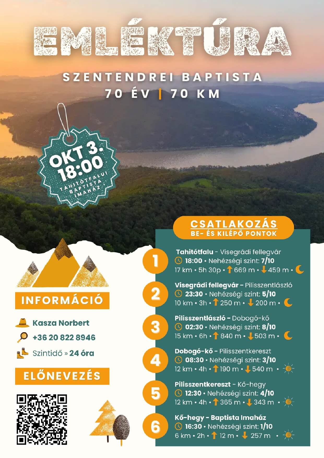 Start: Október 3., péntek, 18:00 – indulás Tahitótfaluból a baptista imaháztól