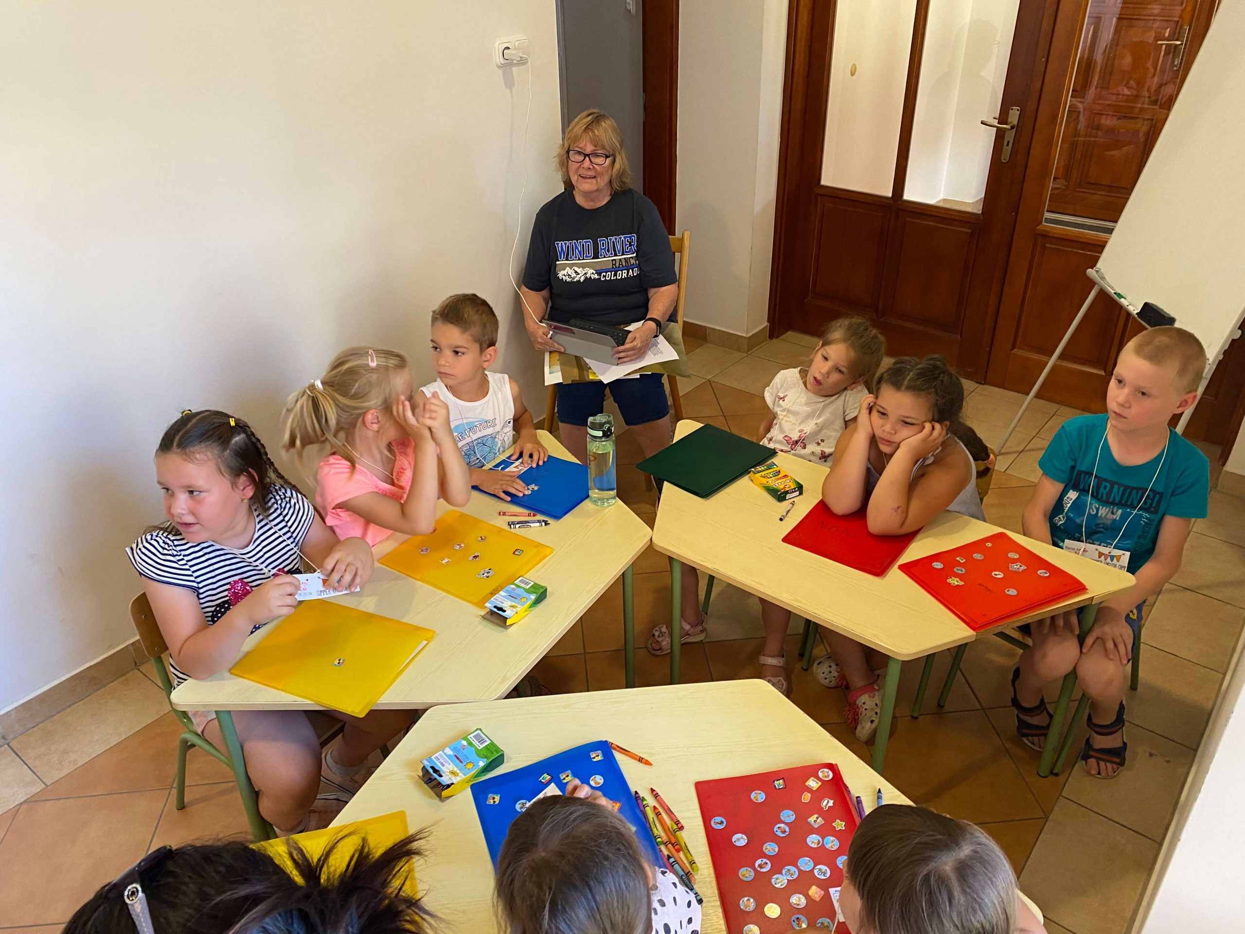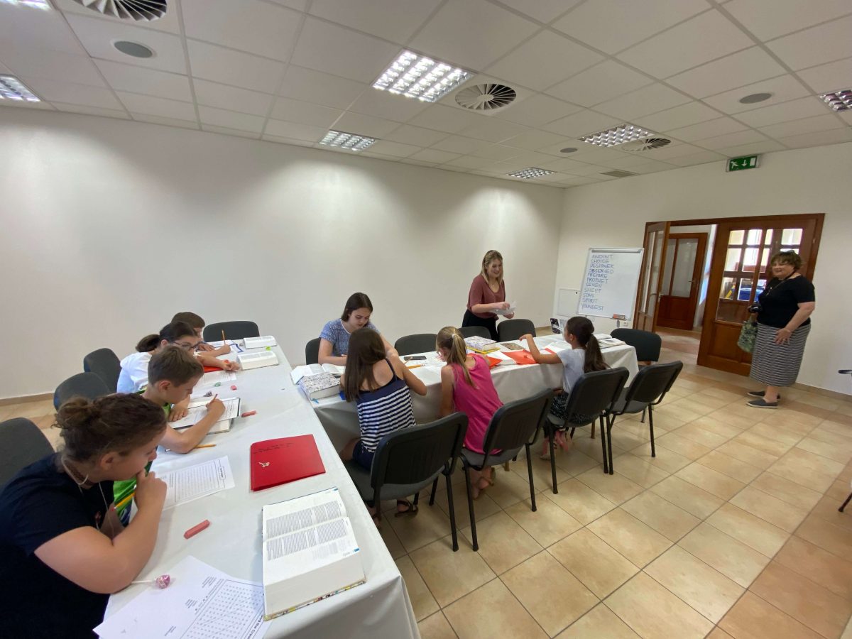 Ezen a héten elkezdődtek az angol bibliai táborok. Jenice Byrd Texasból, a Hungary Missions misszionáriusa segíti a táborok szervezését.