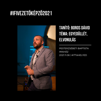 Az esemény harmadik előadója Boros Dávid volt, a József Utcai Baptista Gyülekezet lelkipásztora, aki az egyedüllétről beszélt. Legfontosabb üzenetként azt mondta el, hogy „Ne menekülj az egyedüllétbe, de ne is menekülj az egyedüllétből!”. Az életben ugyanakkor nem vagyunk egyedül, mert Isten mindig mindenhol jelen van. Ezután Dávid több bibliai személy példája alapján bemutatta az egyedüllét egyes aspektusait. Ádámnak nem volt jó egyedül, ugyanakkor amíg egyedül volt, addig senki nem vitte bűnbe. Noé erkölcsi szempontból volt egyedül, és képes volt szembemenni az árral. Jónás fellázadt Isten rendelése ellen, amely egy torz személyiséget okozott nála. Jézusnak pedig az egyedüllétben jött a kísértés, valamint több más bibliai személynél az egyedüllétben szólt Isten. Fontos ugyanakkor kimondani, hogy az egyedüllét nem jó vagy rossz, hanem egy helyzet. Az egyedüllét segít számunkra abban, hogy ne csak az azonnali feladatok jussanak eszünkbe, hanem távlati célokról is tudjunk gondolkozni, főleg az Isten akaratáról az életünkben. Ezért nem szabad kimenekülni a minőségi egyedüllétből, de ne is akarjunk állandóan az egyedüllétbe belemenekülni. A lényeg a minőségi egyedüllét Istennel.
