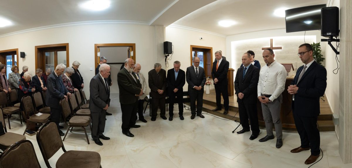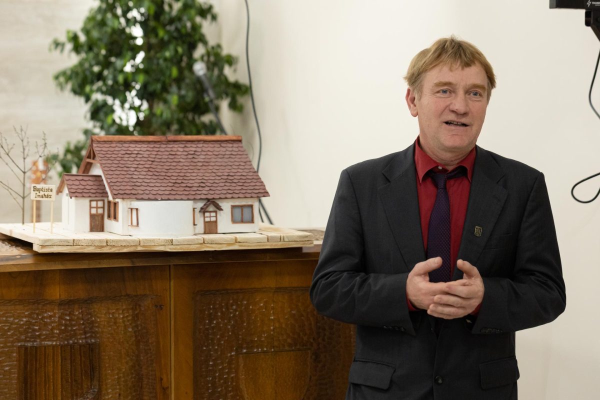Az igehirdetést követően személyes hangvételű visszaemlékezés következett nemcsak a gyülekezet történetére, hanem a felújítás folyamatára is. Hiszen egy maroknyi csapat fáradozást és áldozatot nem kímélve építkezett az elmúlt hónapok során. Hegyesiné Nagy Ibolya, a gyülekezet vezetője mondott köszönetet a lelkipásztornak és a munkálatokban részt vevő férfiaknak. Az imaház makettjét adták emlékbe Eszes Zoltánnak.