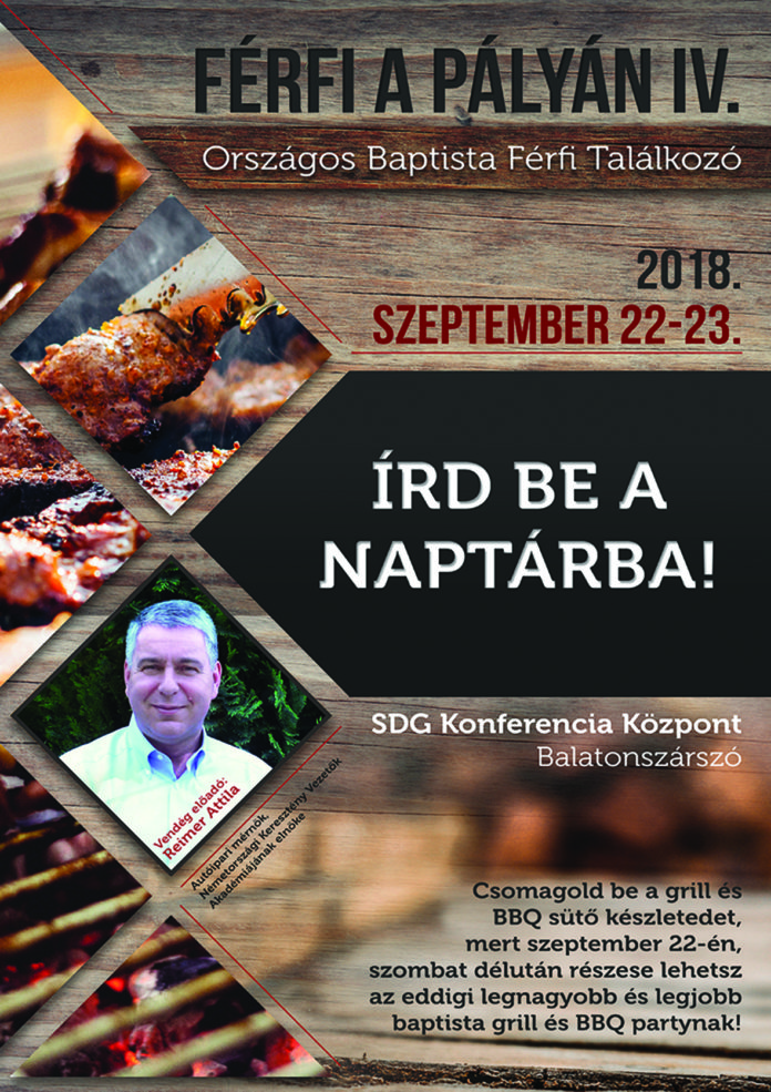 Szeptember 22–23-án, szombaton és vasárnap Férfi a pályán IV. országos baptista férfitalálkozó lesz az SDG Konferencia-központban Balatonszárszón.