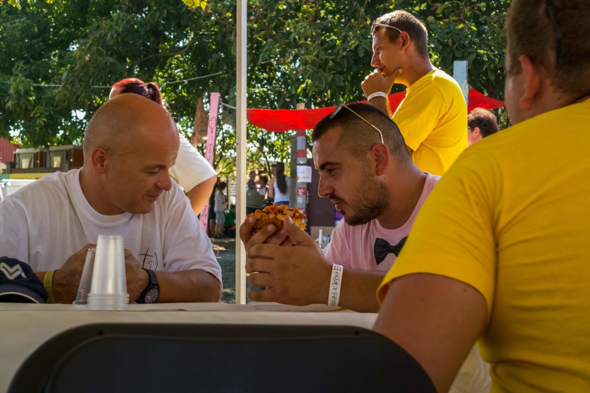 Testvéreink lecsófőzés közben meglátogatták a szomszédos főzőcsapatokat, és a Szentlélek által ihletett beszélgetésekkel, bizonyságtételekkel biztatták a kallódó, kiüresedett szíveket Isten keresésére. Az Úr még a templomtorony látogatása közben is elkészítette az alkalmas időt az örömhír számára, amikor két testvérünk a biztonsági őrökkel osztotta meg az evangéliumot.