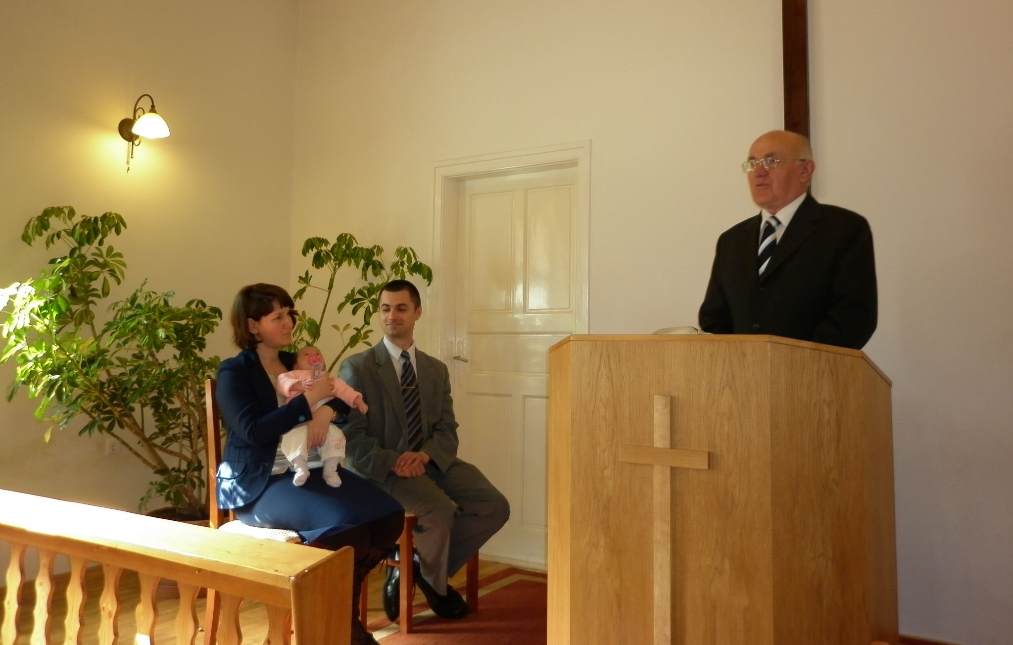 Vasadi Lajos lelkipásztor Mózes 5. könyvéből a 6,4–9. versek alapján bátorította a szülőket, hogy neveljék kislányukat Isten igéje alapján: „Ismételgesd azokat fiaid előtt, és beszélj azokról.”