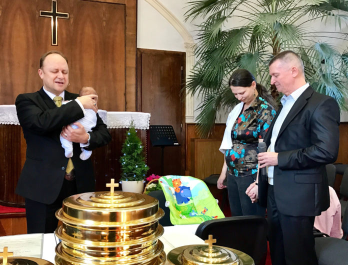 A Tahitótfalui Baptista Gyülekezetben február első, úrvacsorai vasárnapján mutatták be a gyülekezet tagjai, Boros Lajos és felesége, Veller Olga gyermekét, Lajost.