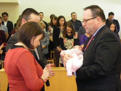 Majd Pál Hannát hoztuk Isten elé imádságban, aki elsőszülöttként látta meg a napvilágot. Mindkét teremtés nagy örömül szolgál a szülők és a gyülekezet számára. Horváth Zsolt lelkipásztor biztatta a családokat a gyermekvállalás útján igei gondolatokkal. Jó tudniuk, hogy Isten védelme körülveszi őket. Az imádságok után a gyülekezet nevében köszöntések hangzottak el. Kívánjuk, növelje tovább a hit útján a fiatal szülőket és gyermekeiket az Úr!