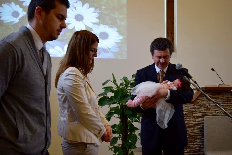 Két örömünnepet is átélhetett gyülekezetünk áprilisban. 10-én Zeffer Ruben és Bettina hozták el Isten és a gyülekezet színe elé elsőszülött kislányukat, Zoét, akit lelkipásztorunk, Ujvári Ferenc mutatott be, áldást kérve életére.