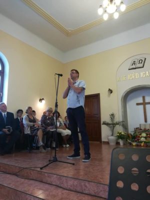 Meglepetésként ért mindenkit, hogy felszólalt egy barátkozó is az alkalmon, megköszönve a közösség imáit egészségi állapotáért, amely pozitív irányt vett. Imádkozunk továbbra is érte, már szeret a gyülekezetbe jönni, felesége tavaly bemerítkezett, reméljük, hamarosan újra megtölthetjük a medencét vízzel.