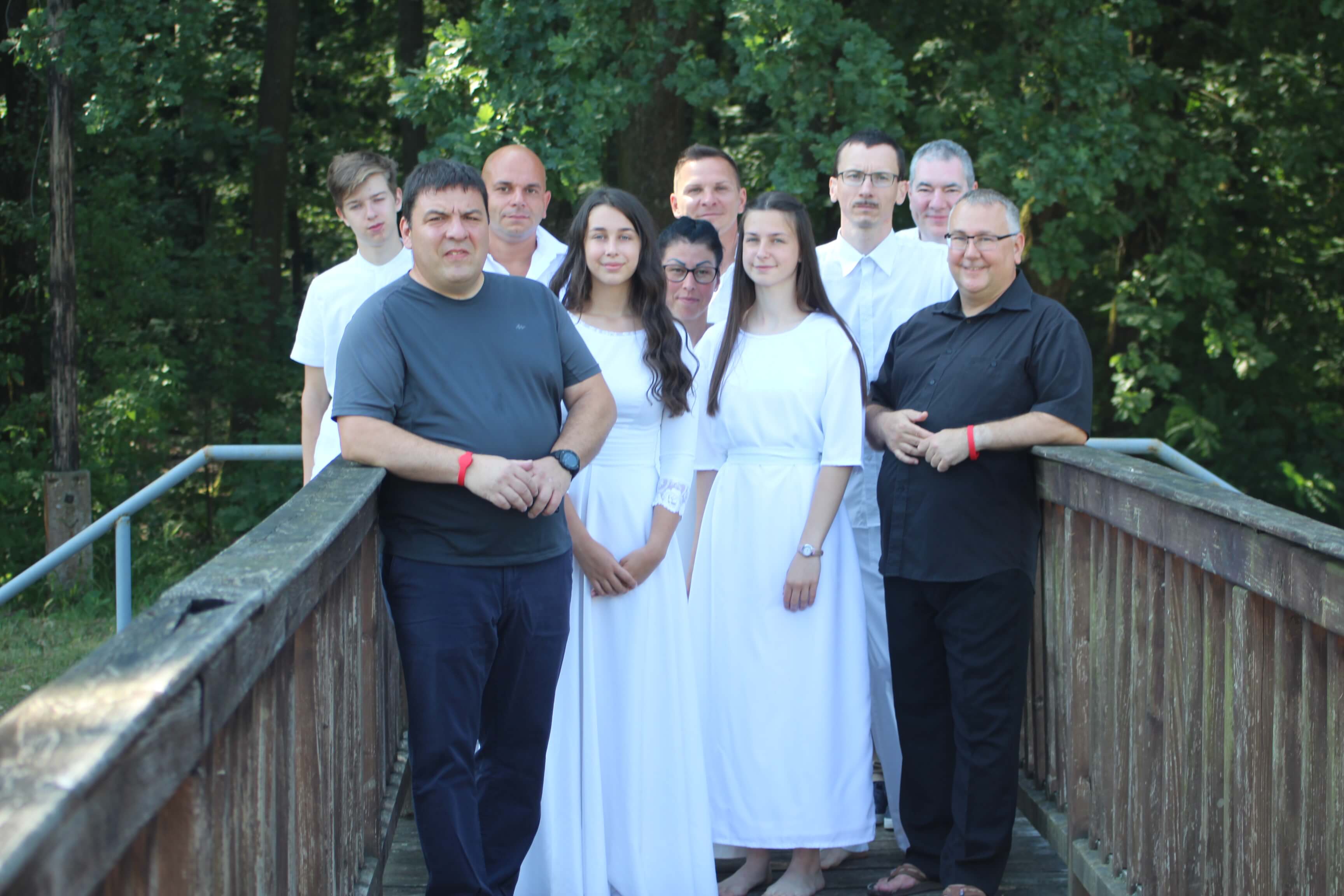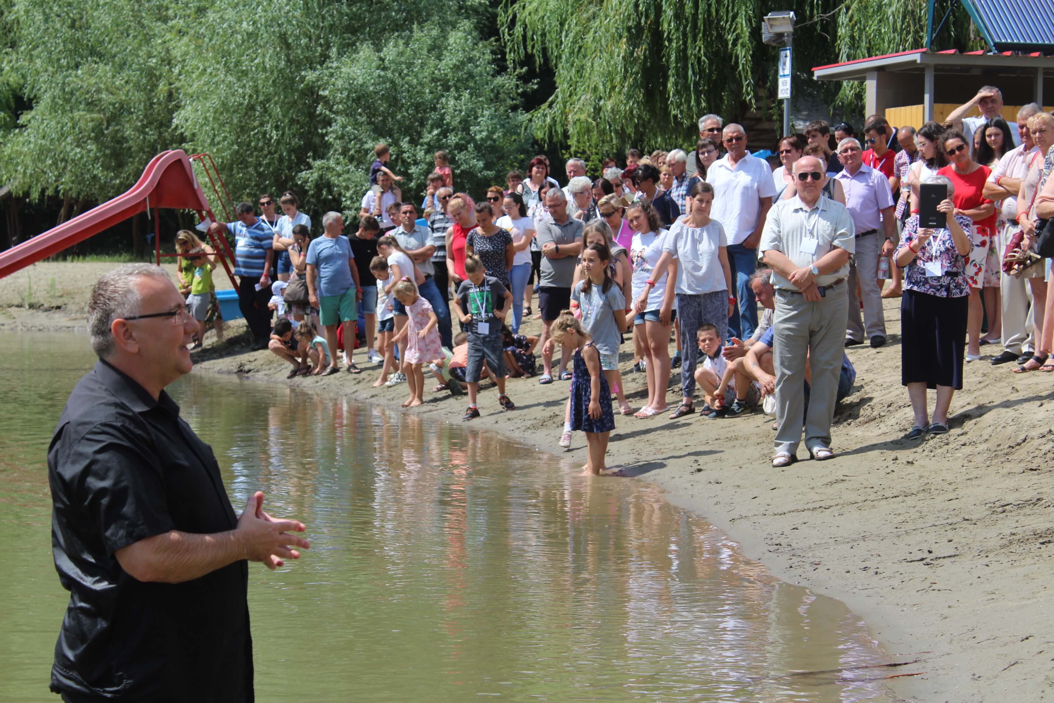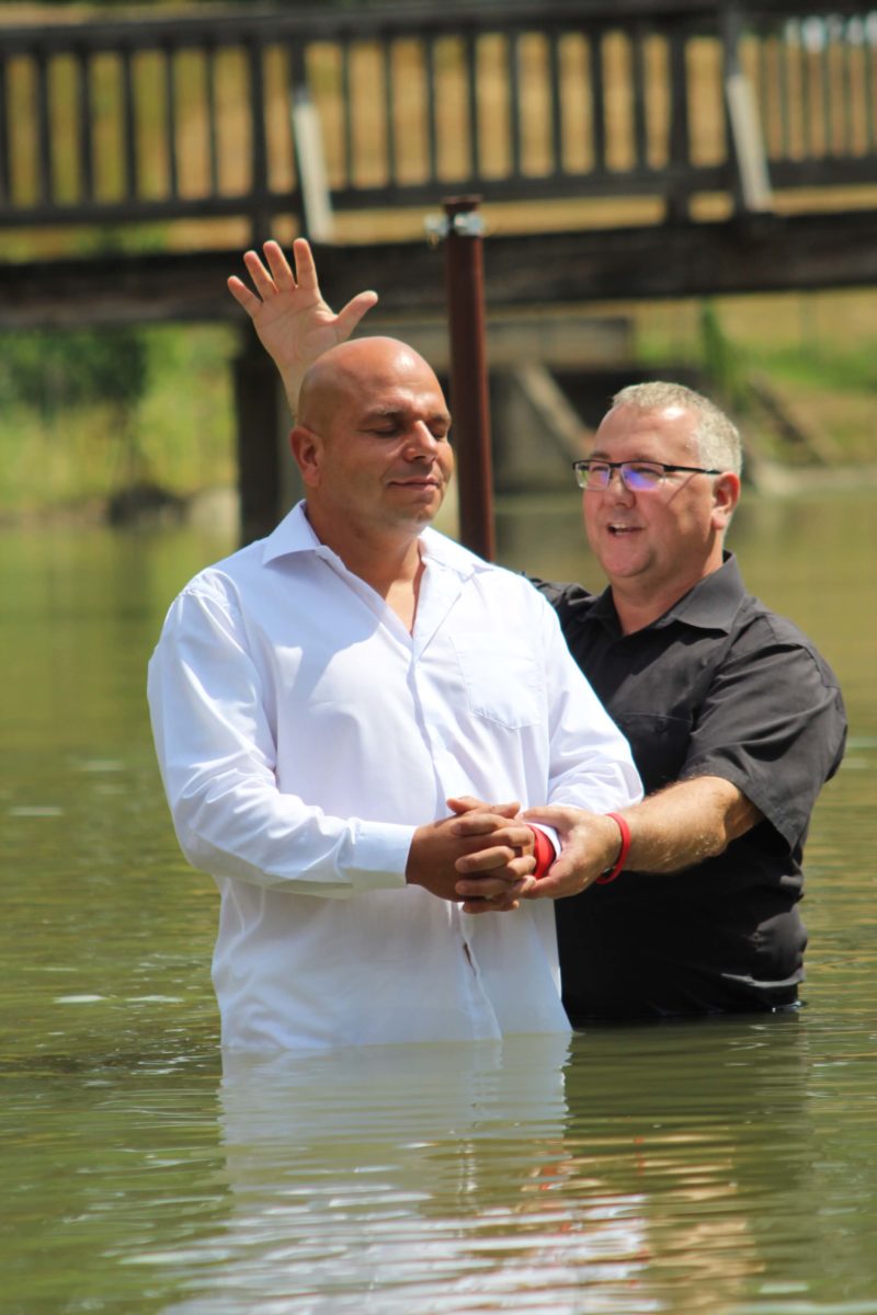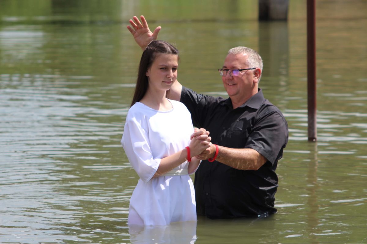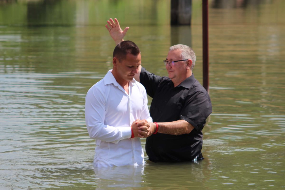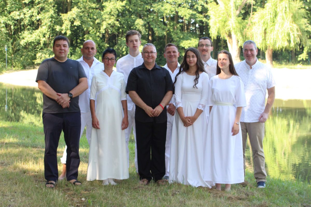 Július 4-én, vasárnap délelőtt megrendezésre került hét hitvalló bemerítése. Erre az ünnepre több mint háromszázan jöttek el a táborba. A járványügyi helyzet miatt biztonságosabbnak találtuk azt a lehetőséget, hogy a szabadban, a Körös partján tartsuk meg ünnepi istentiszteletünket. Kóté Anett, Kóté Attila, Bíró György, Oláh Kata, Tasnádi Anna, Janbroers Nándor és Lehoczki Gergő mondták el megtérésük történetét gyülekezetük, családjaik és barátaik előtt. Kóté Anett egy bántalmazó kapcsolatból menekülve költözött két gyermekével Gyulára, ahol egy szociális étkezés során jutott el gyülekezetünkbe. Megtért, Isten megajándékozta egy férjjel. Mára rendezett körülmények között élnek, és a teológiára is beiratkozott. Kóté Attila nagy mélységből tért Jézus Krisztushoz. Rossz társaságba kerülve szembekerült a rendőrséggel. Kilenc év börtönre ítélték. Rabként festőként dolgozott, és egy munkája során egy régi cella falában egy kis Újszövetséget talált. Elkezdte olvasni, majd hitre jutott általa. (Istennek milyen csodái vannak!) Elhatározta, hogy jó útra tér. Hat év után jó magaviselet miatt szabadlábra helyezték. A gyülekezetünkben kötött házasságot feleségével. Bíró György élete egy szakaszában a szórakozásban kereste az örömöket, de belefáradt ebbe, majd felkereste Debrecenben a baptista gyülekezetet. Eljárt az alkalmakra, de munkája miatt elköltözött a városból a Dunántúlra, majd Gyulára. Itt találkozott ismét a baptistákkal. A karantén időszakában részt vett a törekvők óráján, megtért. Oláh Kata nagypapája által kezdett gyermekkorában eljárni a gyülekezet által szervezett táborokba. Mikor nagyobb lett, elhívták a fiatalok az ifjúságba. Itt barátokra talált, majd megtért. Tasnádi Anna szülei a múlt évben merítkeztek be imaházunkban. Akkor kezdett elgondolkodni azon, hogy neki is ezt az utat kellene választania. Néhány igehirdetés ebben megerősítette. Janbroers Nándor még általános iskolás korában egy tahi táborban tért meg. A középiskolába kerülve eltávolodott az Úrtól és a gyülekezettől, de a karantén ideje alatt több ideje volt gondolkodni, Bibliát olvasni, így jutott arra az elhatározásra, hogy be szeretne merítkezni. Lehoczki Gergő saját megfogalmazása szerint nehéz szülés volt. Felesége hat éve tért meg, azóta rendszeresen ő is látogatója az istentiszteleteknek. Már tavaly is jelentkezett a törekvők órájára, de az utolsó pillanatban meggondolta magát és nem merítkezett be. Idén több beszélgetés, imádkozás segítette a végső döntésében.