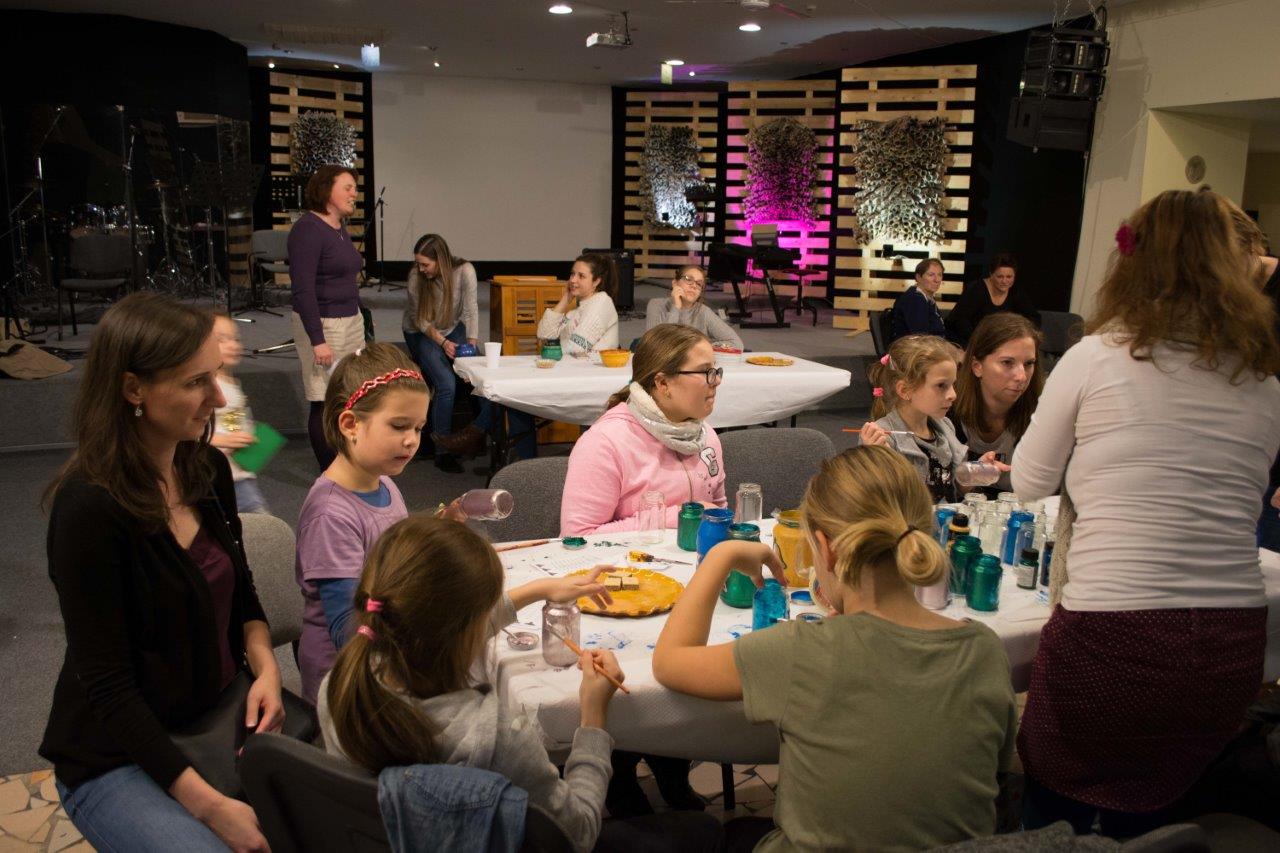 Évek óta kedves rendezvényünk a karácsonyi dísz- és ajándékkészítő est. Közeli barátainkat hívjuk meg a kellemesen berendezett alkotó-, közösségi térbe, ahol az asztaloknál karácsonyi különlegességeket készítünk. Teázás és nassolás közben az Úr Jézusba vetett hitünkről, az igazi karácsonyról beszélgetünk. Így ők közelebb kerülhetnek Istenhez, még ha egyelőre nem is érzik késznek magukat eljönni egy vasárnapi istentiszteletre vagy a csütörtöki Új Remény csoportba. Öröm volt látni, hogy teljes családok is bekapcsolódtak.