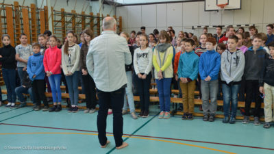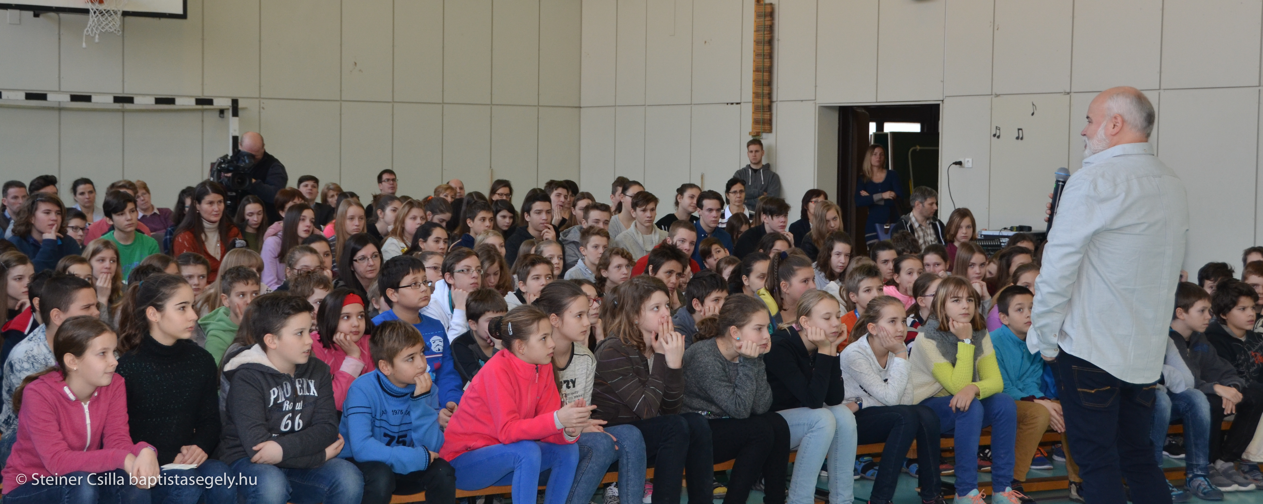 A fővárosi Andor Ilona Ének-Zenei Általános és Alapfokú Művészeti Baptista Iskolában január 26-án, csütörtökön megtelt a tornaterem tanulókkal, pedagógusokkal és szülőkkel a B49-es program Hittörténetek című eseményén.