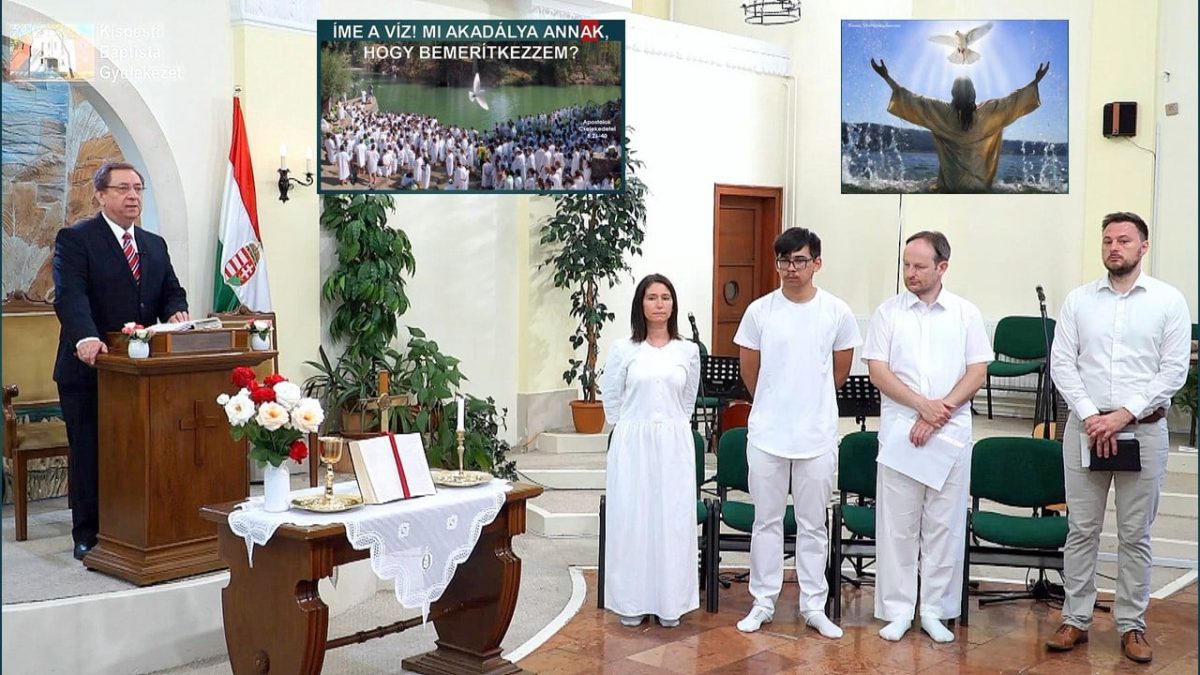 Nagy örömünnepe volt a Kispesti Baptista Gyülekezetnek 2021. június 20-án, amikor három fehér ruhás hitvalló pecsételte meg Krisztus melletti elköteleződését a gyülekezet nemrégen felújított baptisztériumában.