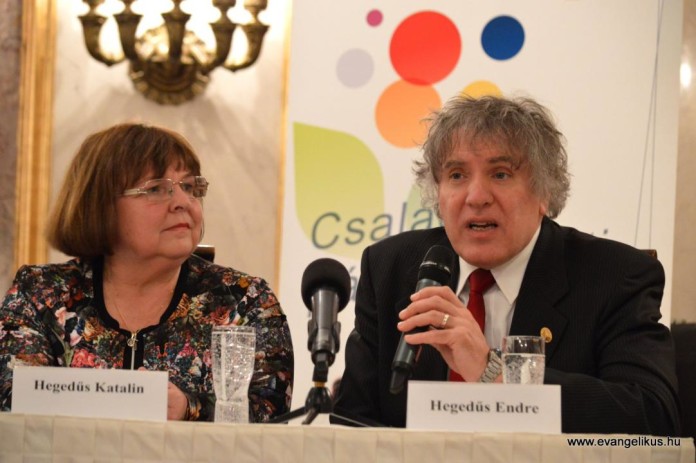 – ezt a mottót választotta a házasság hete idei házaspár arca, Hegedűs Endre, Kossuth- és Liszt-díjas zongoraművész és felesége, Hegedűs Katalin zongoraművész. A házasság olyan, mint a Mission Impossible: egy lehetetlen küldetés, ha azt egyedül akarjuk megélni. A házasságot mi nem önzően egyedül, nem is ketten, hanem hárman éljük: Istennel közösségben” – fogalmazott Hegedűs Endre. A Kossuth-díjas zongoraművész beszédében hangsúlyozta, hogy a házassághoz elengedhetetlen a humor és játékosság, hogy a problémák ne buktatók legyenek: „Tudni kell a negatív érzelmek örvényében megállni és rátalálni arra, hogyan lehet azon változtatni. Ilyenkor jó egy vicc vagy az imádság. Ezektől mindig elfelejtjük, hogy min is veszekedtünk.” Hegedűs Endre ugyanakkor kiemelte, hogy „a házasság életünk főműve, mely átsegít a nehéz feladatokon”.