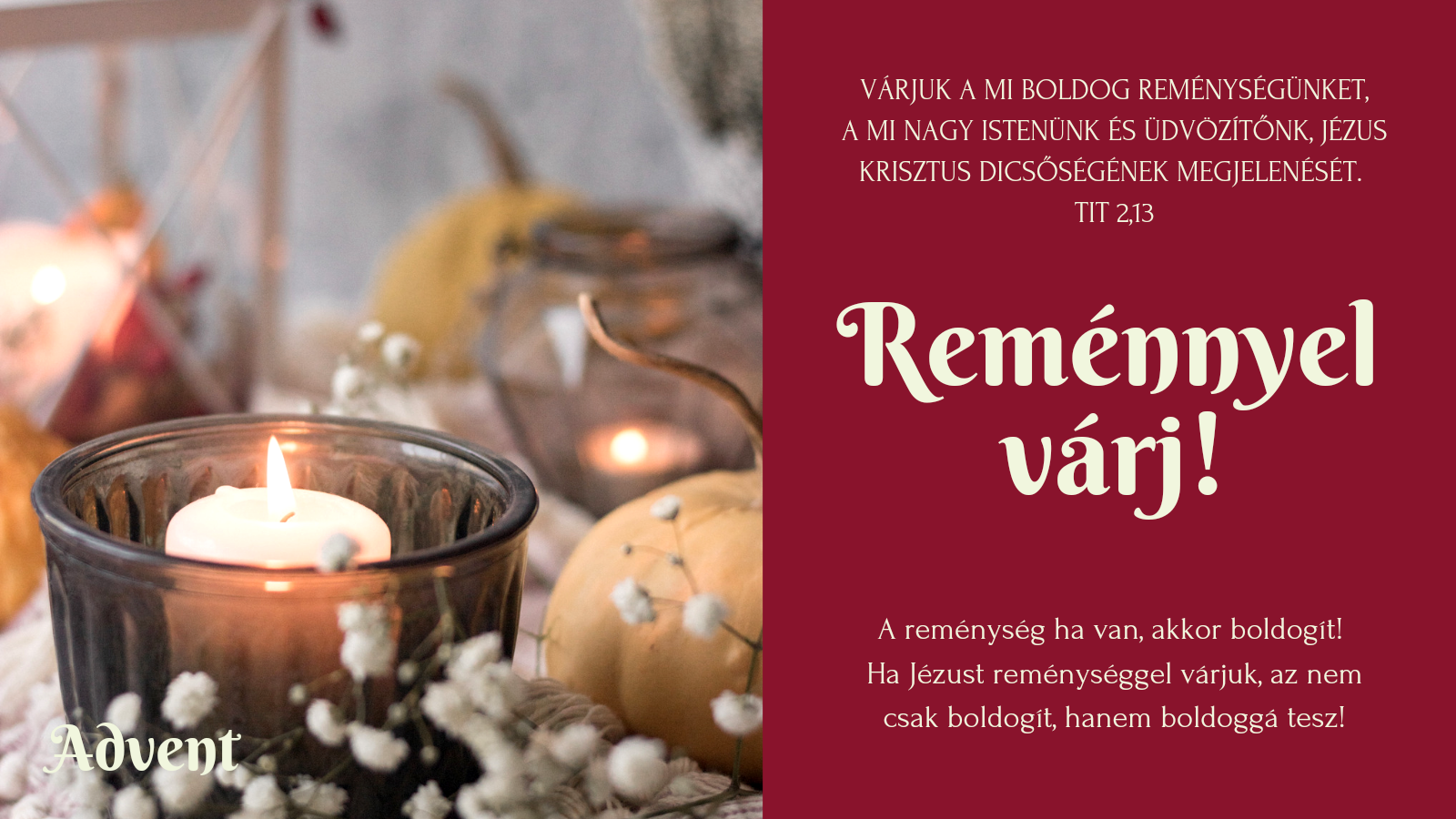 A reménység ha van, akkor boldogít! Ha Jézust reménységgel várjuk, az nemcsak boldogít, hanem boldoggá tesz!
