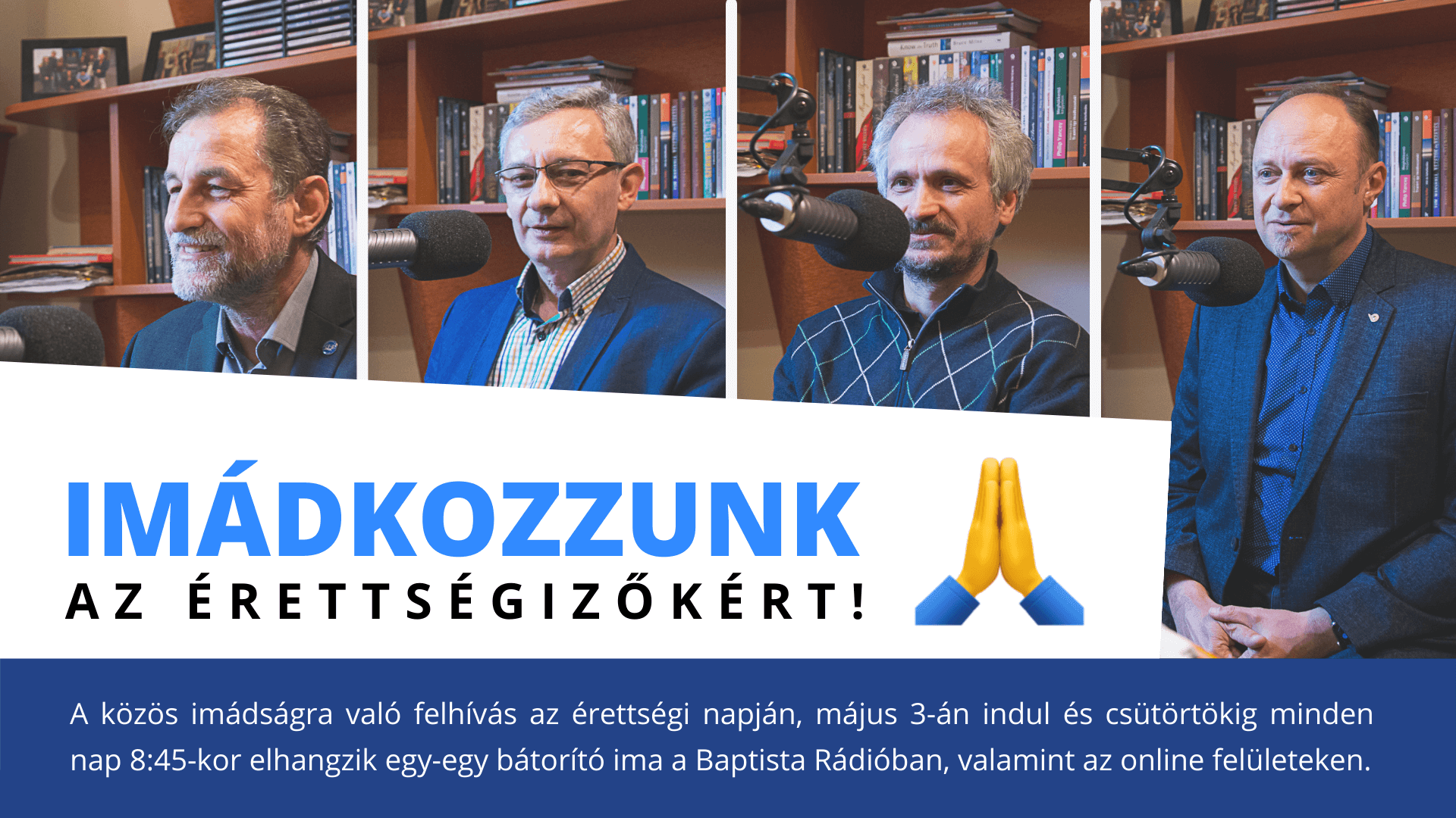 A közös imádságra való felhívás az érettségi napján, május 3-án indul, és csütörtökig mindennap elhangzik egy-egy bátorító ima a Baptista Rádióban, valamint az online felületeken. Dr. Szabó Csabát, a Baptista Szeretetszolgálat oktatási főigazgatóját kérdeztük a kezdeményezésről.