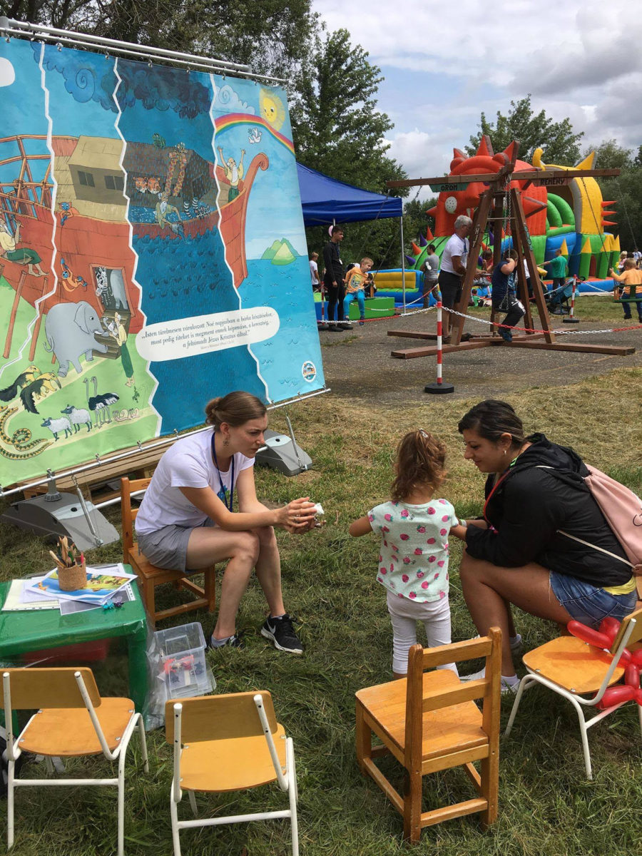 Külön meg kell említenem azt, hogy minden várakozást felülmúlt a menetlevél ötlete. A regisztrációnál minden gyermek kapott egy menetlevelet, amire pecséteket kellett gyűjteniük ahhoz, hogy a végén ajándékot kaphassanak. A pecséteket úgy szerezhették meg, ha meghallgatták a négy molinó előtt ülő animátorokat, akik elmesélték a különböző bibliai történeteket (teremtés, Noé, József és Dániel történeteit). Öröm volt látni, amilyen figyelemmel és fegyelemmel ültek, hallgatták a történeteket, sokszor a szüleikkel együtt.