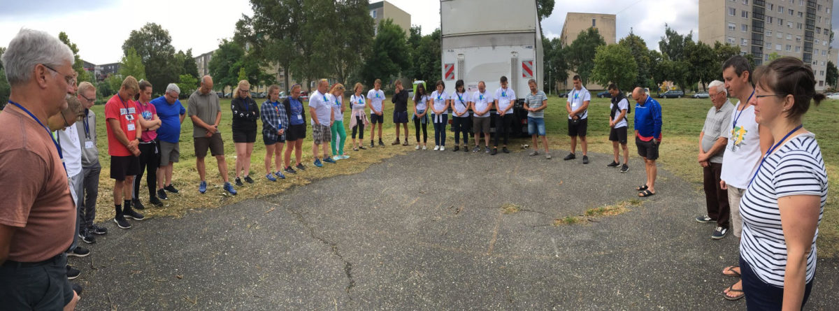 Másnap reggel a park felállítása előtt nagy körben újra imádkoztunk és ismételten kértük Istent, hogy tartsa vissza az esőfelhőket Oroszlány felett az ő dicsőségére.