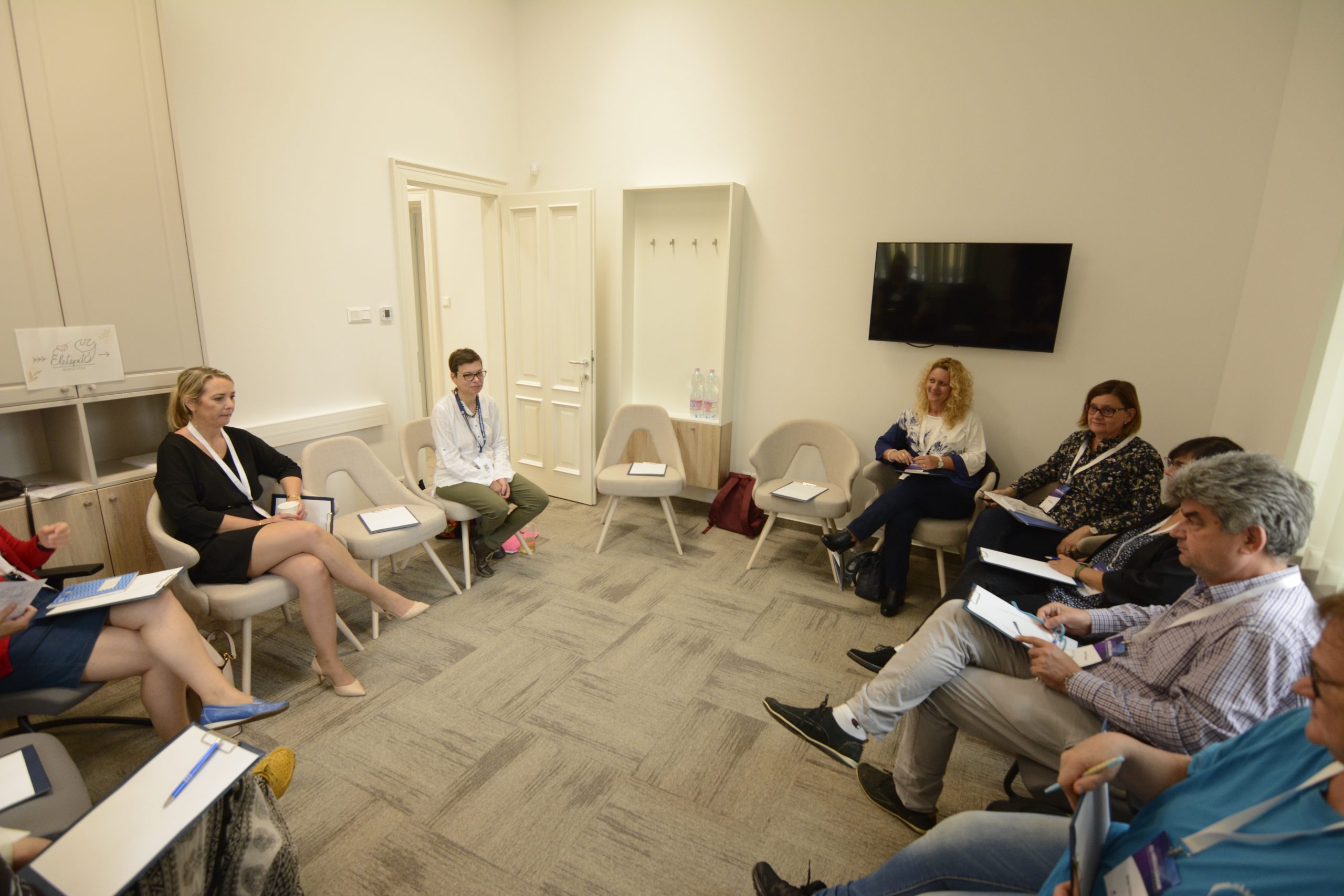 A konferencia résztvevői a délután folyamán kiscsoportos foglalkozásokon is részt vehettek, ahol további mélyebb beszélgetésekre nyílt lehetőség egy-egy konkrét témában. Selmeczi Ottilia (biblioterapeuta, keresztény lelkigondozó, gyermekgyászcsoport vezető, a Baptista Oktatási Központ munkatársa) „A Megfelelés hegyét hányszor megmásztam már” címmel tartotta a foglalkozást. Milyen egy jó keresztény, hogy él és mit csinál? Sokan úgy érzik, hogy az elvárásoknak nem tudnak megfelelni, esetleg sebeket szereztek miattuk. A sajátélmény feldolgozását célzó csoportfoglalkozáson a biblioterápia segítségével őszintén beszélgettek a gyülekezetből és a családból érkező elvárásokról. Reimer Márta a „Hallgass magadba is! Üzenet, amely segít” című interaktív, sajátélmény-foglalkozásán lehetőség nyílt a „belső csapat” vagy „belső tanács” modell (Schulz v. Thun) segítségével egy-két konkrét és aktuális esetet (problémát) közelebbről is megvizsgálni. A cél, hogy a végén a disszonáns hangok eltűnjenek, belső szavaink, mondataink leginkább Jézus szavaival megtámasztva felszabadítsanak és egységes, építő belső csapattá váljanak számunkra.