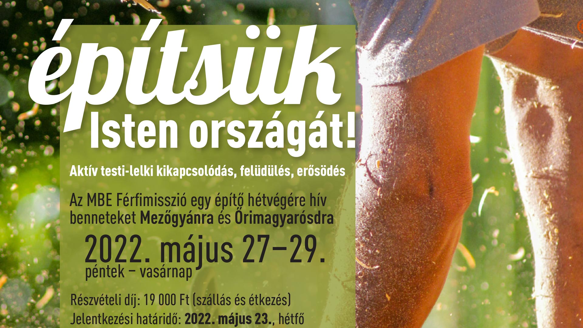 Aktív testi-lelki kikapcsolódás, felüdülés, erősödés. Az MBE Férfimisszió egy építő hétvégére hív benneteket Mezőgyánra és Őrimagyarósdra 2022. május 27–29. (péntek–vasárnap) között!