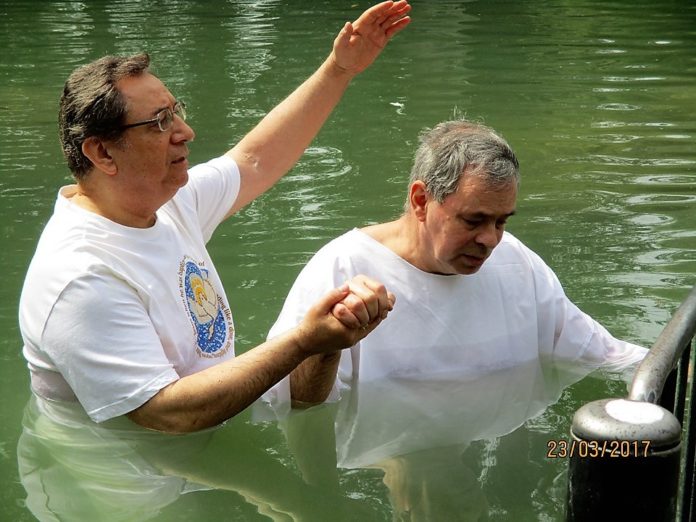 A Jordán folyó partján továbbhaladva felkerestük Jézus bemerítésének feltételezett helyszínét is, ahol az egyik hitre jutott utastársunk, Törő Gábor őszinte vallástétele után újszövetségi bemerítésben is részesült. Innen Jézus felnevekedésének városába, Názáretbe tartottunk, ahol angyal jelezte Máriának és Józsefnek, hogy különös módon élhetik át a gyermekáldás örömét. Eljutottunk abba a zsinagógába is, ahol Jézus először hirdette meg a rá vonatkozó prófécia beteljesedését: „Az Úr lelke van énrajtam…” Názáretben egy jelentős létszámú baptista gyülekezet is tevékenykedik, általános, közép- és felsőfokú iskolát is működtet. Innen mentünk át a közelben található Tábor-hegyének csúcsára, Jézus megdicsőülésének emlékhelyére.