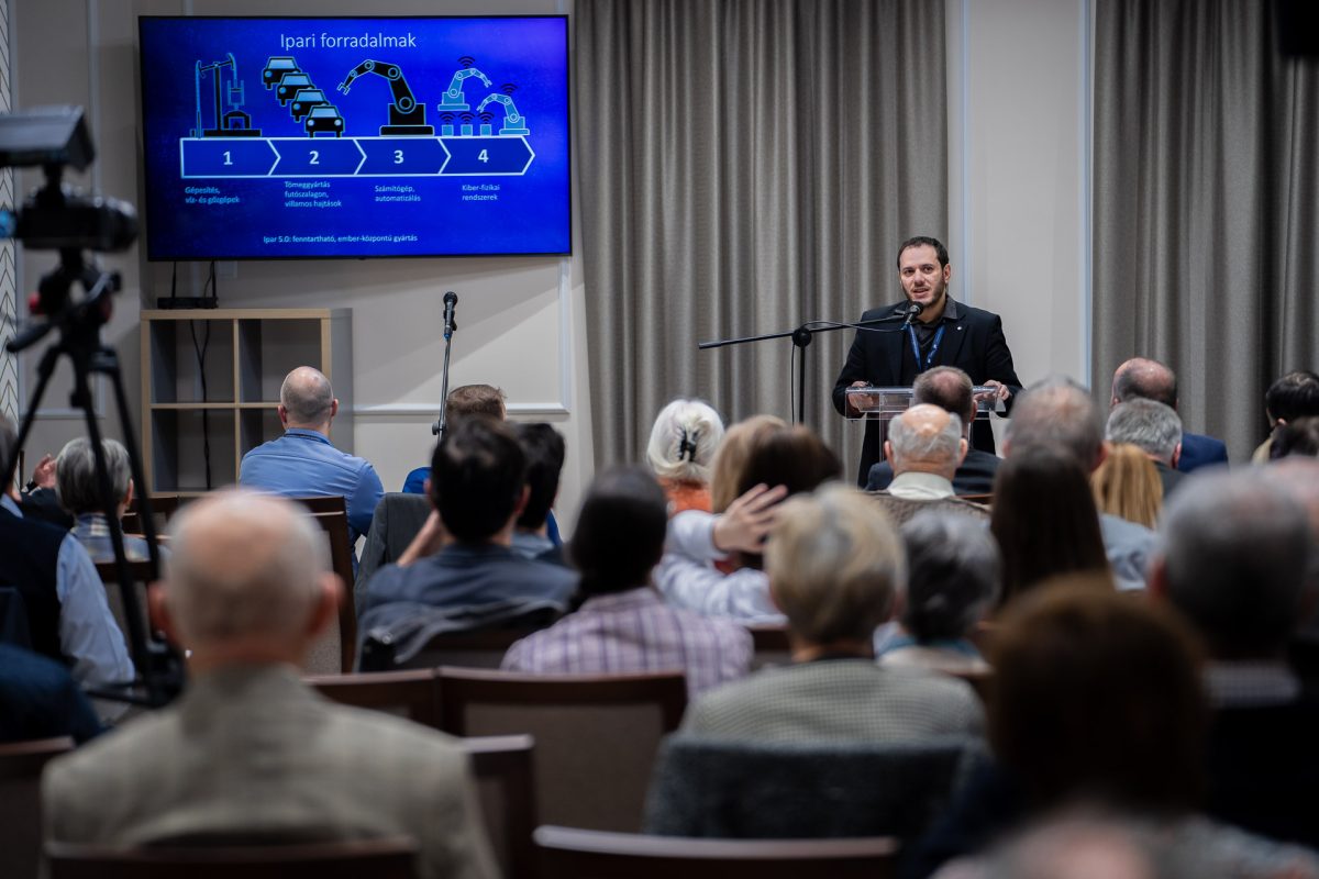Dr. Paniti Imre tudományos munkatárs (Mérnöki és Üzleti Intelligencia Kutatólaboratórium, HUN-REN SZTAKI) a munka világát érintő automatizálási kihívásokról és technológiai fejlesztésekről tartott előadást. Az előadás során bemutatta, hogyan befolyásolja az automatizáció és a technológiai fejlődés a munkaerőpiacot, és hogyan kell az egyéneknek felkészülniük ezekre a változásokra.