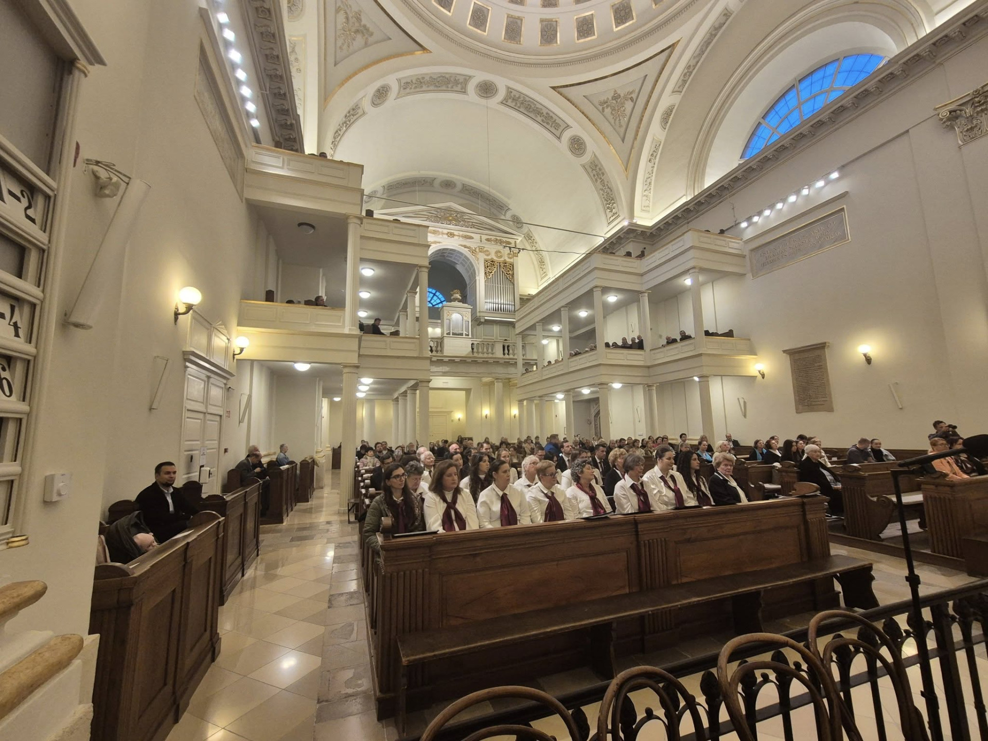 Az ünnepi alkalom zárásaként az összkar Lisznyay Gábor feldolgozásában énekelte a felemelő himnuszt: „Zengd Jézus nevét, zengd, világ, királlyá Jézust koronázzátok!”