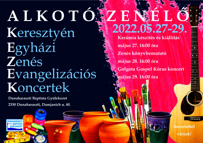Május 28-án, szombaton 16 órától Tisza Attila baptista lelkipásztor mutatja be két könyvét. Zenél a keresztény bluegrass zenét játszó Blue Danube Bluegrass Band. A bluegrass amerikai zenei stílus, a folk és a country műfaj közé tehető.
