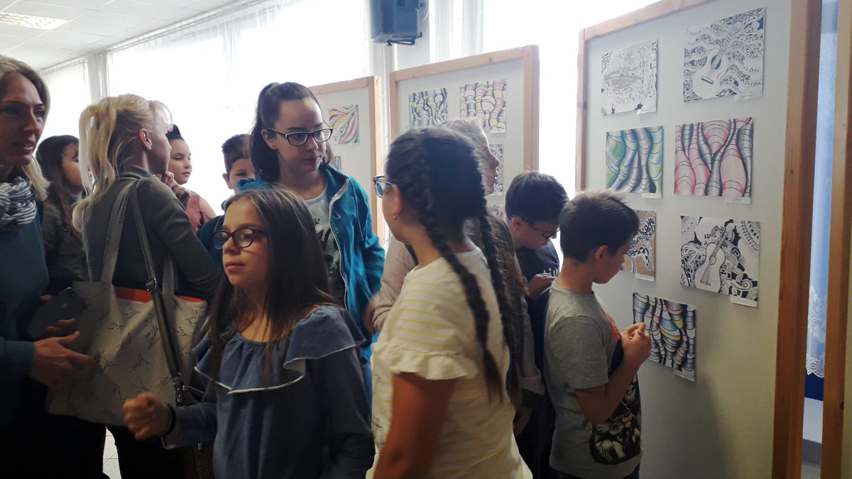 A képzőművészet tanszakos tanulók alkotásaiból rendezett kiállítást Szilágyiné Bodnár Erzsébet igazgatónő a következő szavakkal nyitotta meg: „A paravánokon gyermekrajzokat láthatunk, melyek tele vannak frissességgel és őszinteséggel. A rajzok az alkotó gyerekek szívét és szellemét tükrözik, és egyben bepillantást engednek a gyerekek világába is.”