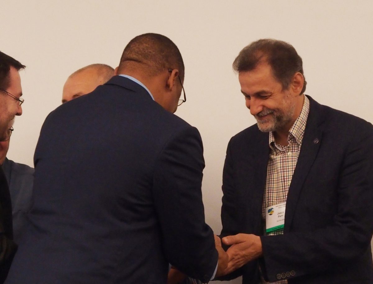 Egyházunk nevében Papp János egyházelnök vette át a díjat Paul Msiza és Elijah Brown világszövetségi vezetőktől.