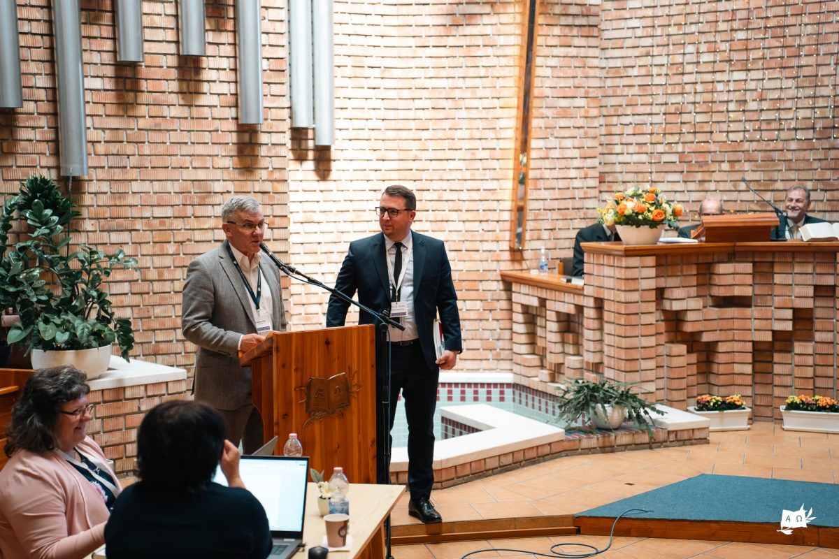 Tájékoztatást kaptunk arról, hogyan halad a Közösségi formák és a Gyülekezetek vezetése munkaanyagainak kidolgozása. Örömmel fogadtunk két, most csatlakozó közösséget körünkben: a Tiszafüredi Baptista Gyülekezetet és a budapesti Ámulatos Kegyelem Gyülekezetet. A Baptista Teológiai Akadémia élére érkező új rektort, Várady Endrét elődje, Mészáros Kálmán, valamint Papp János egyházelnök köszöntötte.