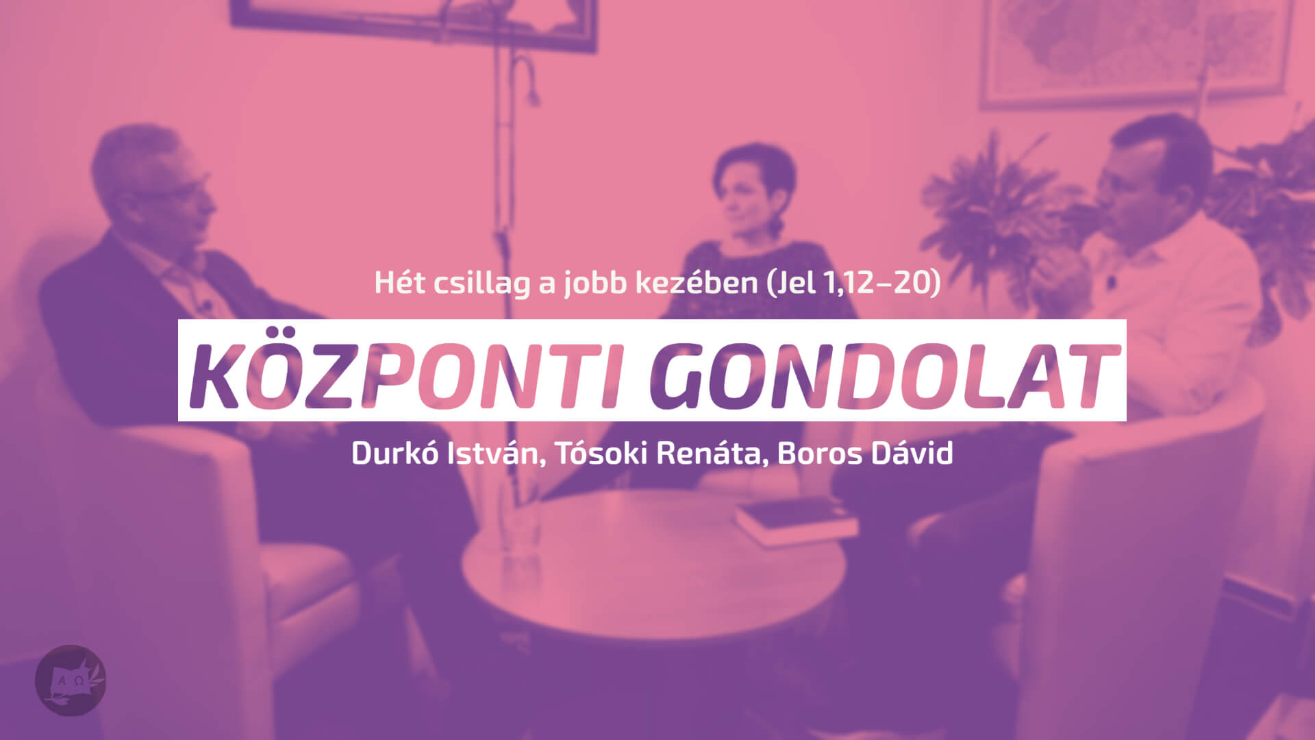 Megfordultam, hogy lássam, milyen hang szólt hozzám, és amikor megfordultam, hét arany gyertyatartót láttam, és a gyertyatartók között az Emberfiához hasonlót: hosszú palástba volt öltözve, mellén aranyövvel körülövezve, feje és haja fehér volt, mint a hófehér gyapjú, szeme, mint a tűz lángja, lába hasonló volt a kemencében izzó aranyérchez, hangja olyan, mint a nagy vizek zúgása, jobb kezében hét csillagot tartott, szájából kétélű éles kard jött ki, és tekintete olyan volt, mint amikor a nap teljes erejével ragyog. Amikor megláttam, lába elé estem, mint egy halott, ő rám tette jobbját, és így szólt: Ne félj! Én vagyok az első és az utolsó és az élő: halott voltam, de íme, élek örökkön örökké, és nálam vannak a halál és a pokol kulcsai. Írd meg tehát mindazt, amit láttál, ami van, és ami ezek után történik majd, a hét csillag titkát, amelyet jobb kezemben láttál, és a hét arany gyertyatartót: a hét csillag a hét gyülekezet angyala, a hét gyertyatartó pedig a hét gyülekezet. (Jel 1,12–20)