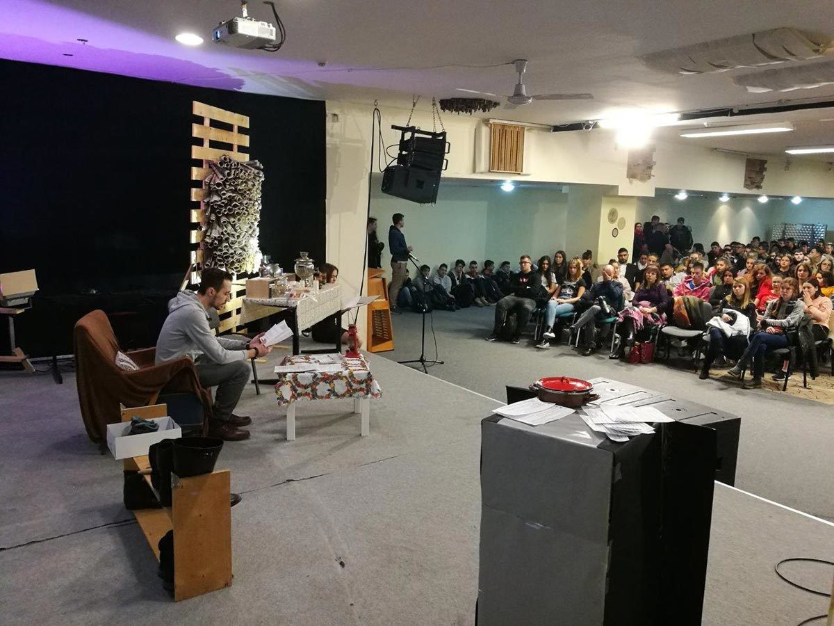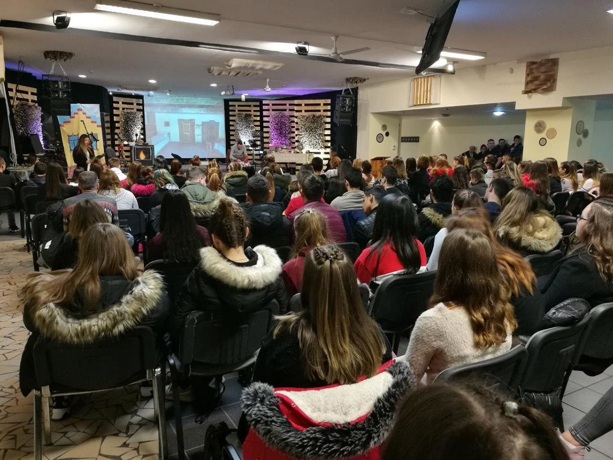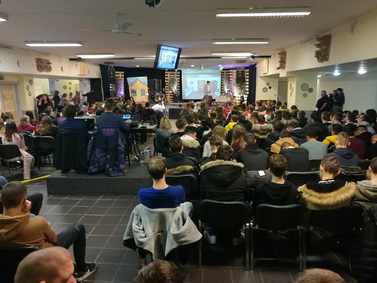 2019. december 20-án tehát a tanulók saját karácsonyi műsorát követően 400 diák hallotta idén is az evangéliumot pásztorunk tolmácsolásában, és a fiatalok az Úr zenés dicsőítésében is részt vehettek.