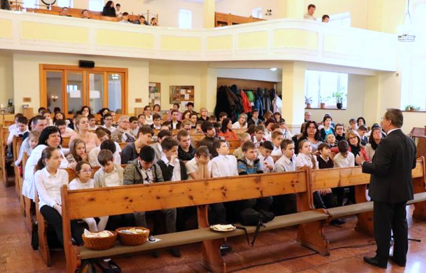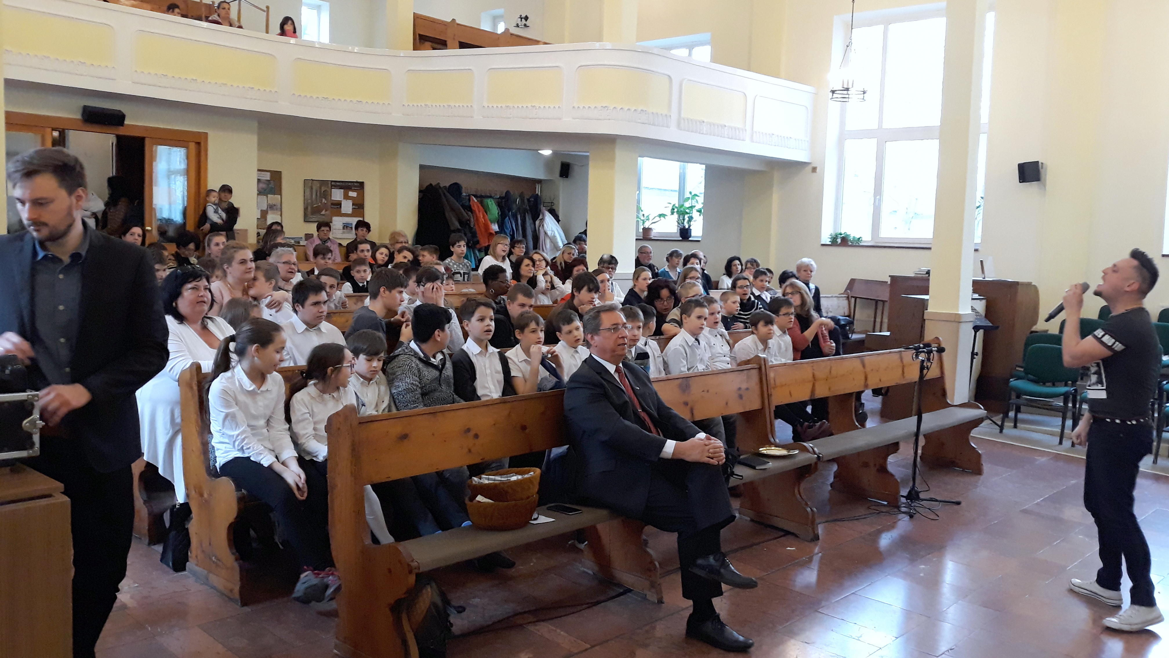 Húsvéti istentiszteletre jöttek össze a Pannonhalmi Béla baptista iskola diákjai és tanárai több szülő részvételével 2018. március 28-án, szerdán délután a Kispesti Baptista Gyülekezet imaházában.