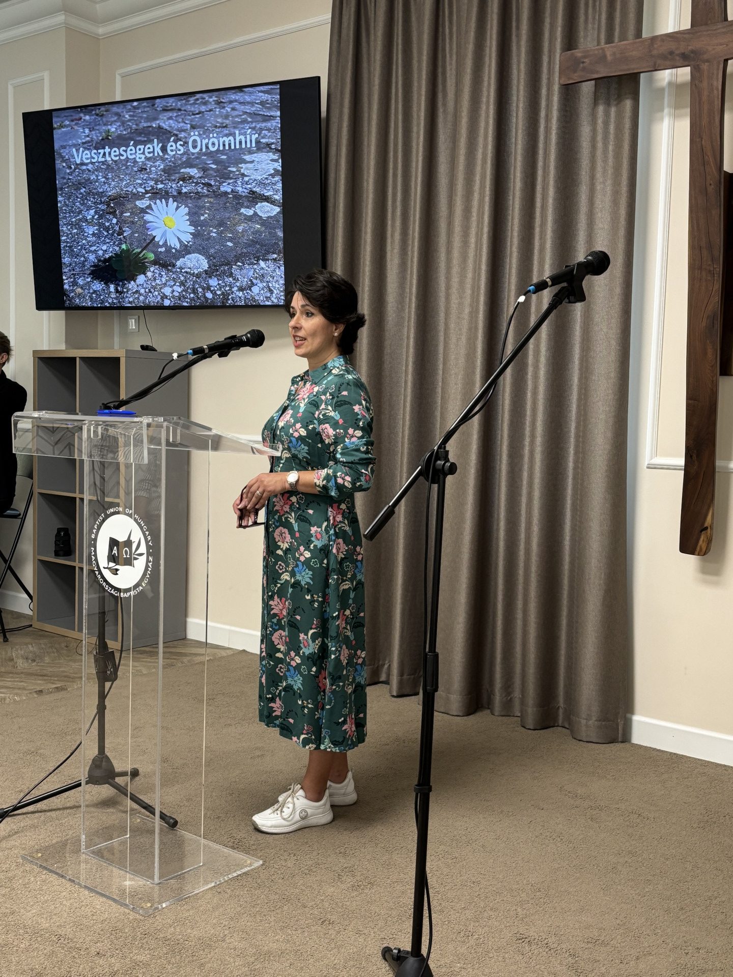 Harsányiné Városi Ildikó mentálhigiénés szakember és Gyászfeldolgozás Módszer R Specialista, a veszteség és gyász feldolgozásának lépéseiről beszélt. Rávilágított arra, hogy a veszteség minden ember életének része függetlenül attól, hisz-e vagy sem. Az életfordulók (óvodakezdés, házasság, gyermekvállalás, munkahelyváltás vagy épp a gyermekek kirepülése) egyszerre jelentenek beteljesedést és veszteséget. A hívő embernek is meg kell tanulnia elbúcsúzni a korábbi élethelyzetektől, hogy felkészülten tudjon belépni az új életszakaszokba.
