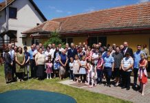 Az istentisztelet végén Csabát és feleségét, Erikát a gyülekezet, a város polgármestere és a jelen lévő lelkipásztorok köszöntötték.